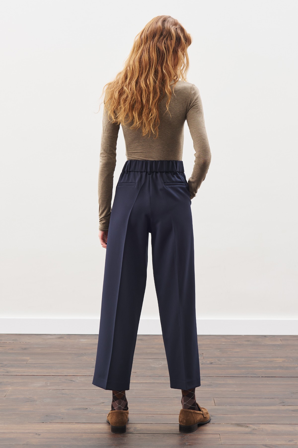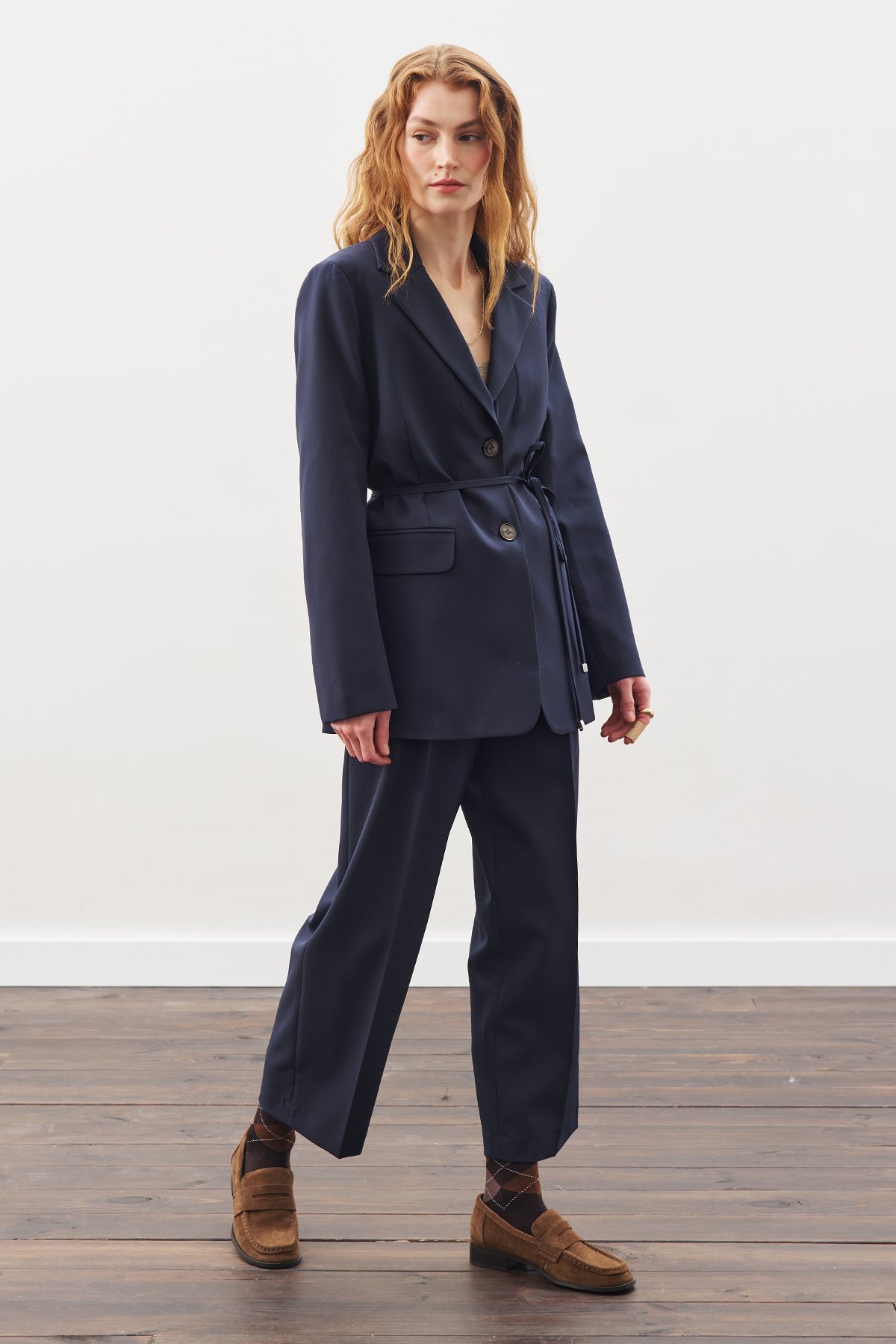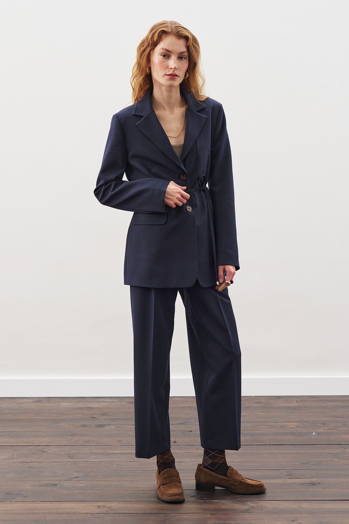 PLEATED DETAIL STRAIGHT CUT PANTS NAVY