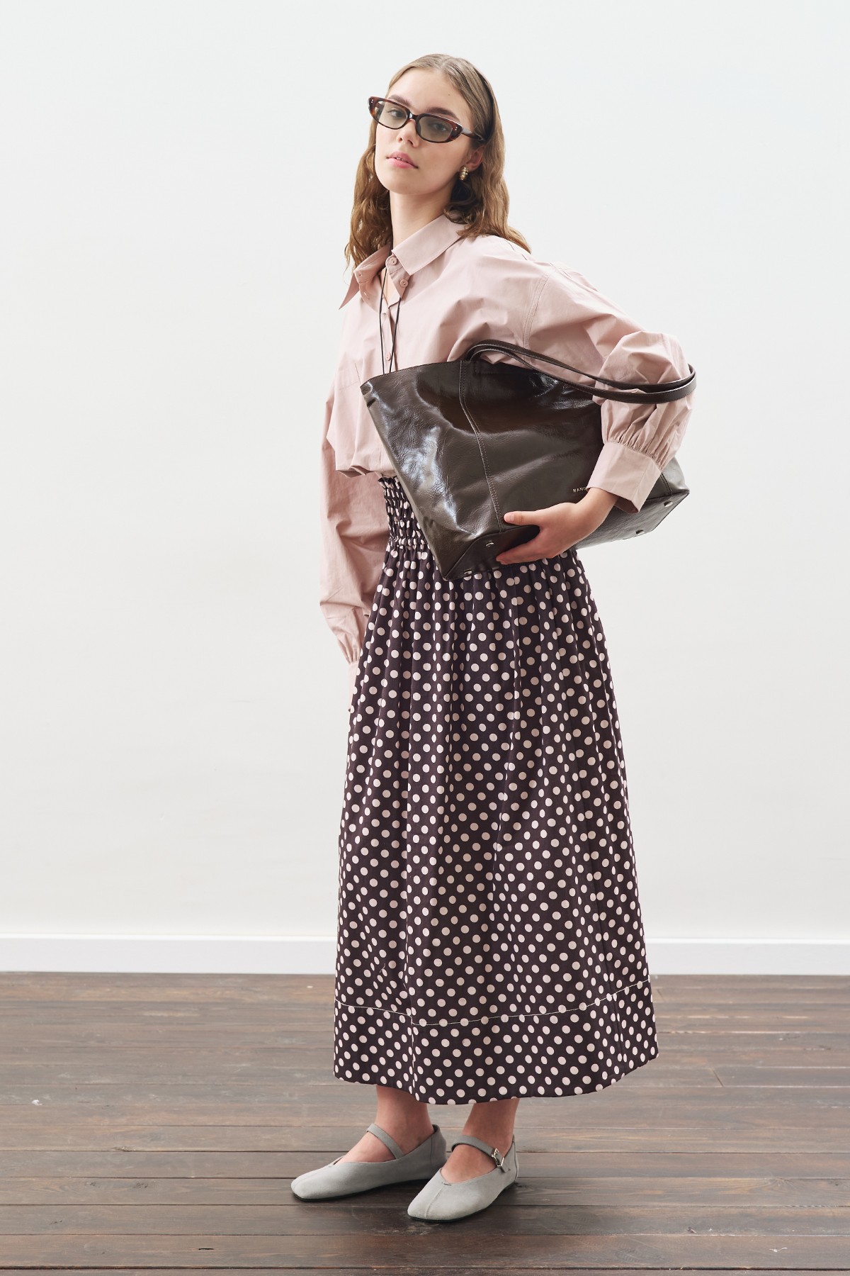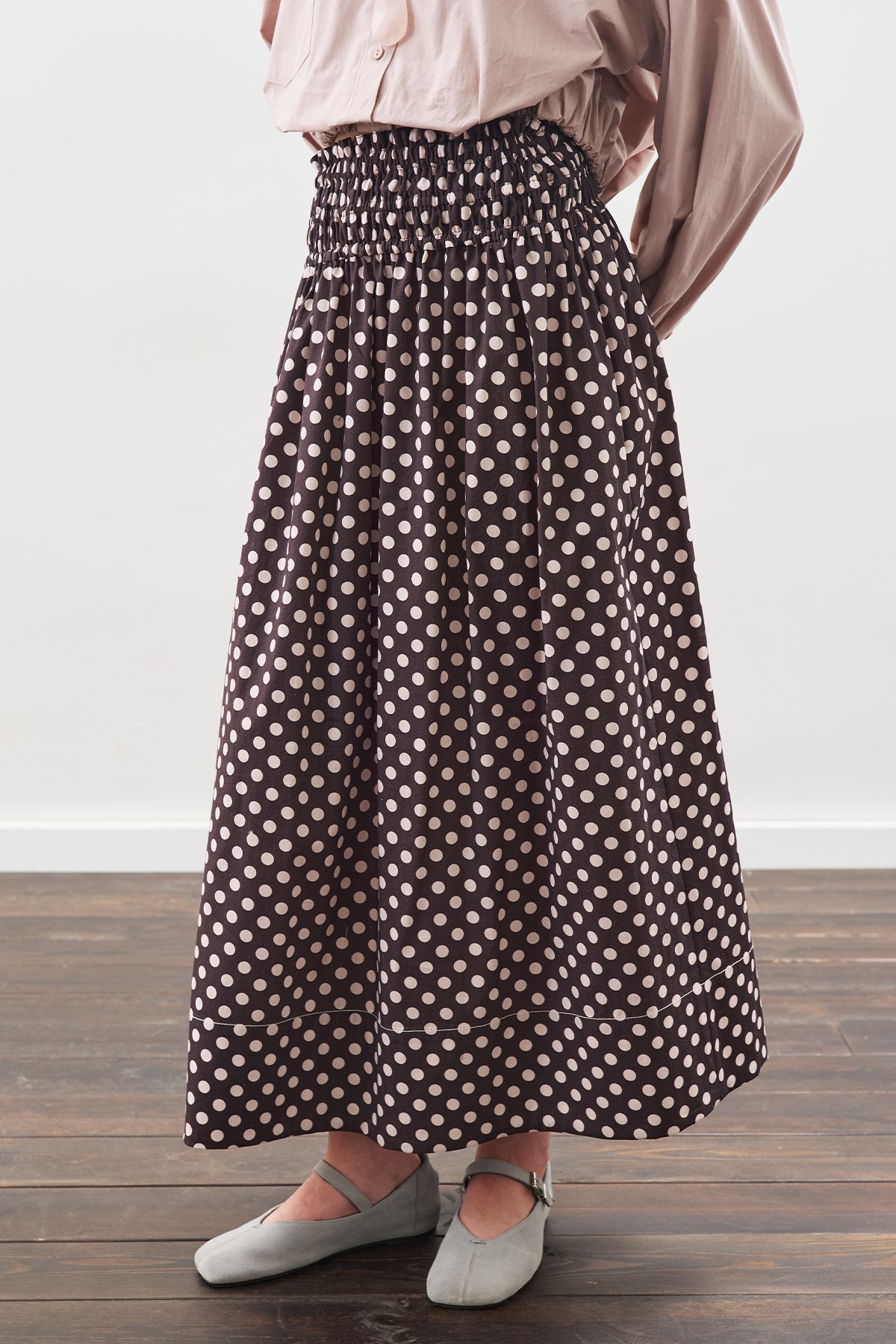 POLKA DOT GATHERED WAIST SKIRT BROWN