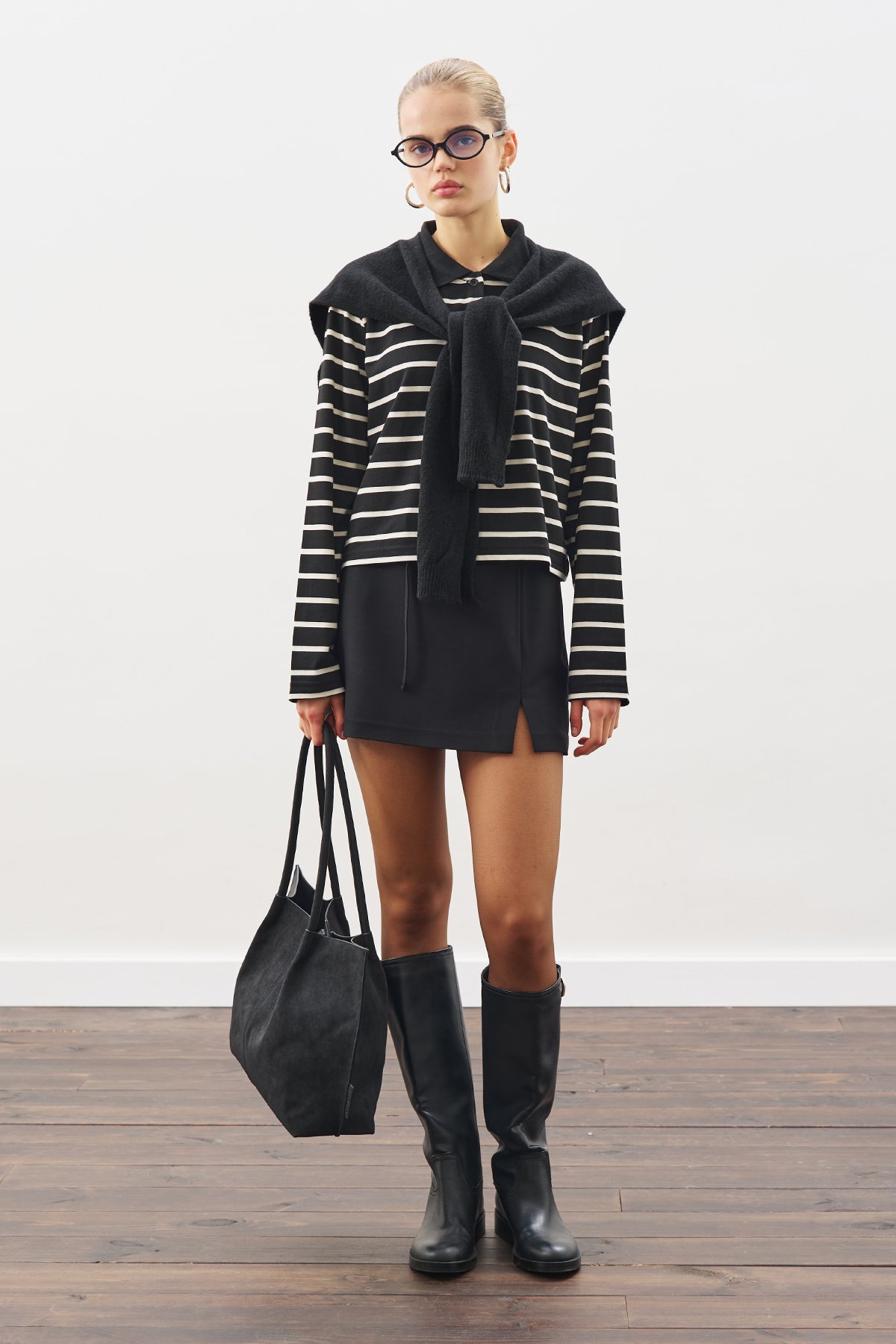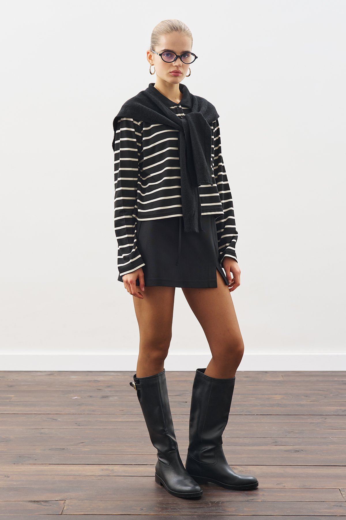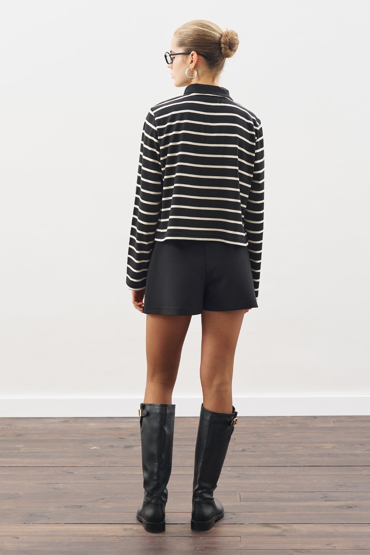 POLO COLLAR STRIPED T-SHIRT BLACK FEATURES