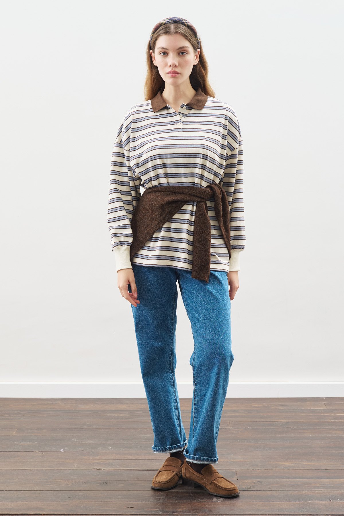 POLO YAKA OVERSIZE TSHIRT MAVİ