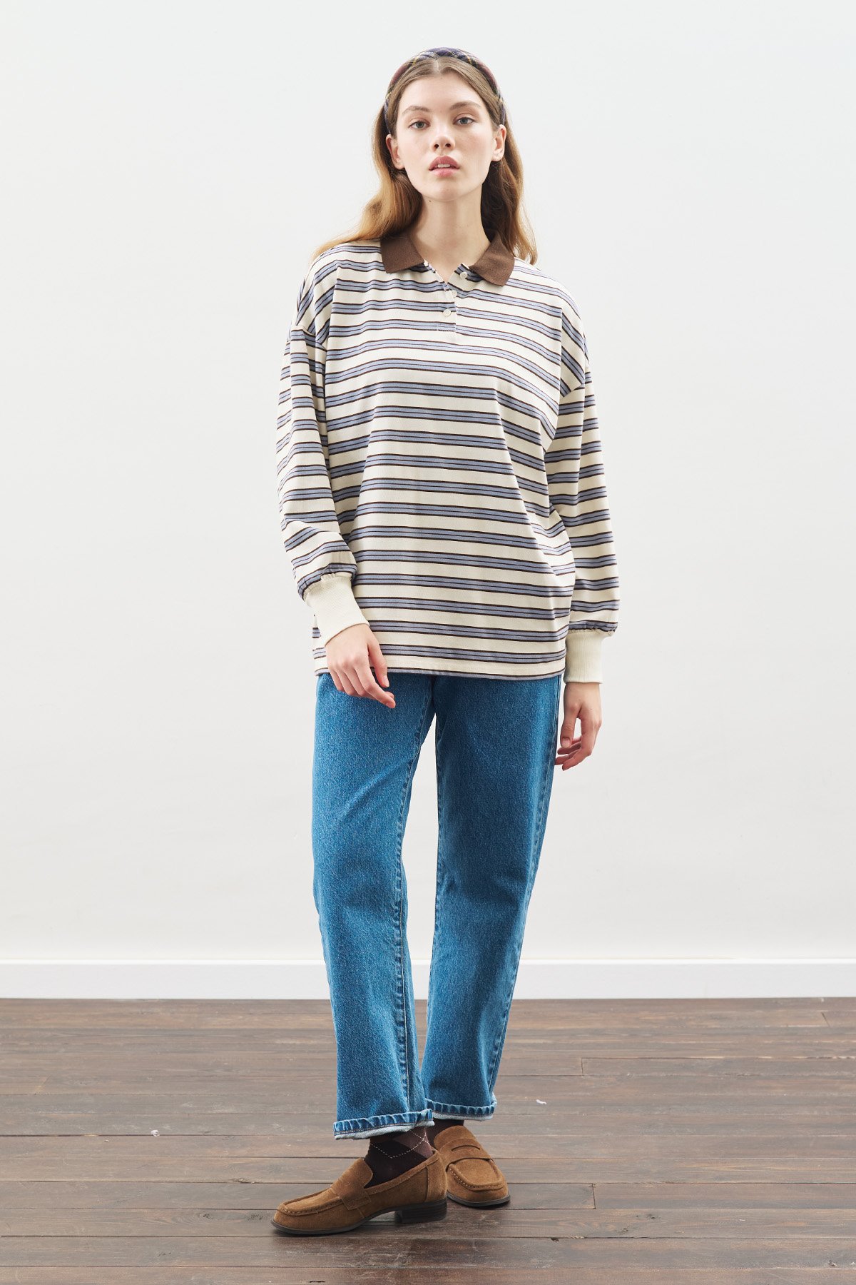 Polo yaka, uzun kol,çizgili model,düğmeli yarım patlı,ara boy, normal kalıp.Ana Kumaş %80 Pamuk,%20 Polyester