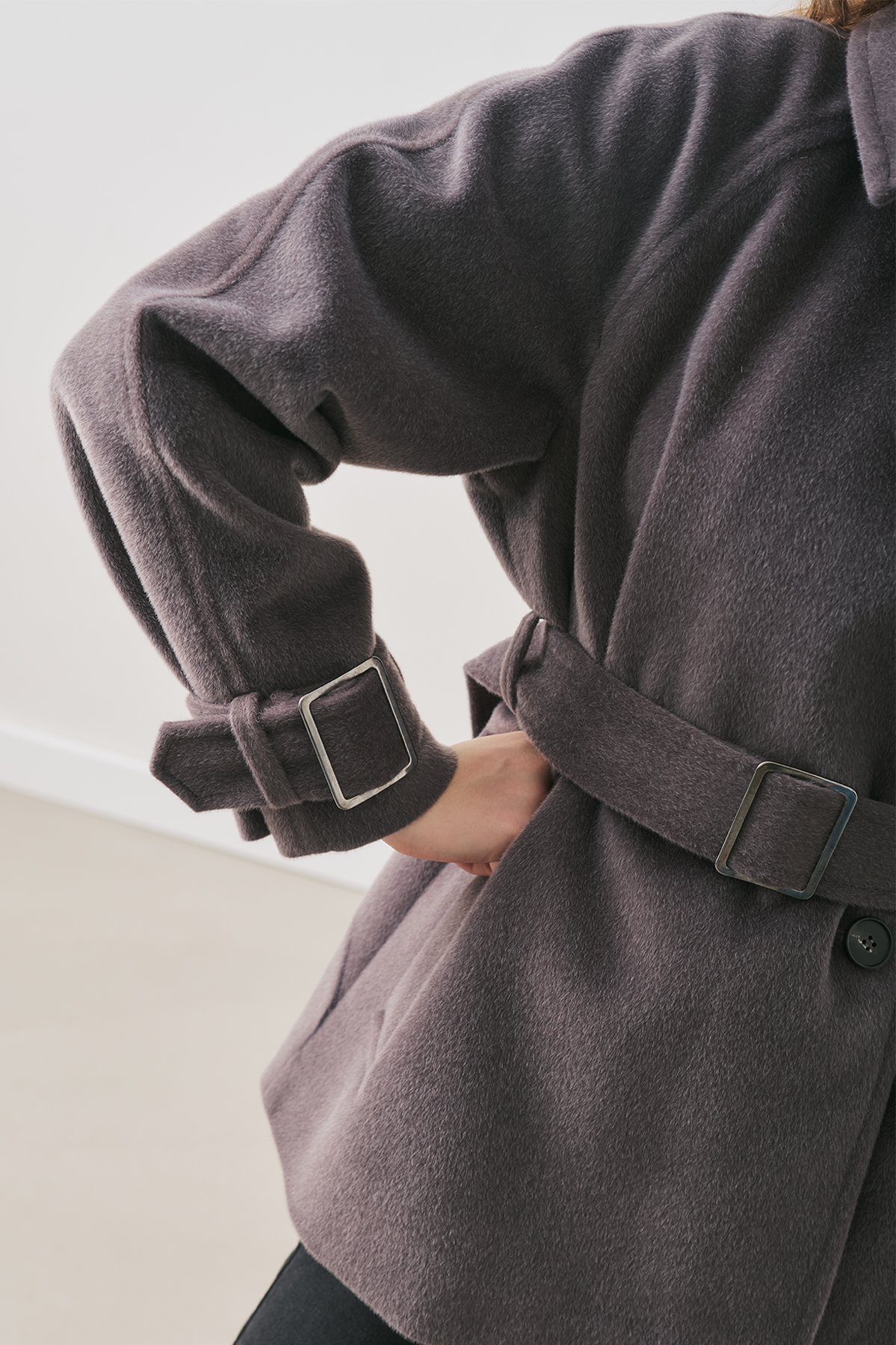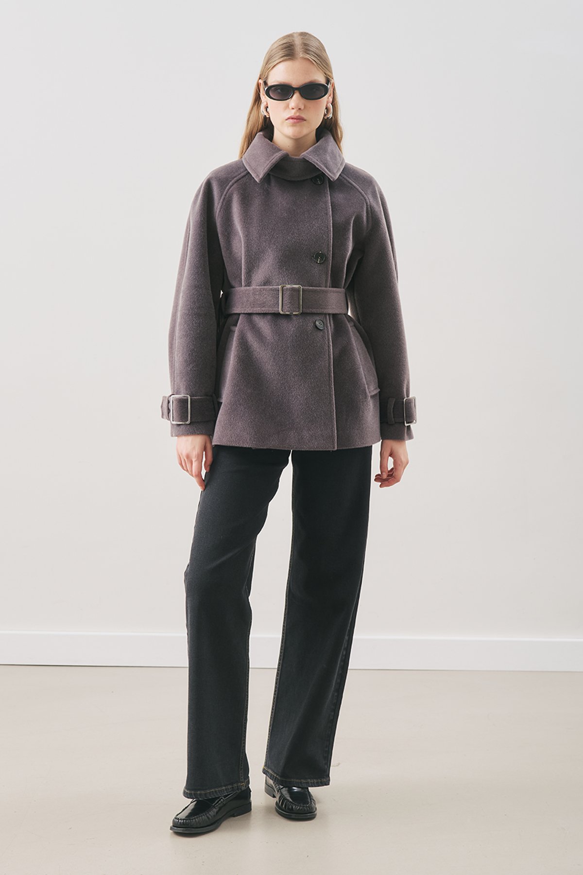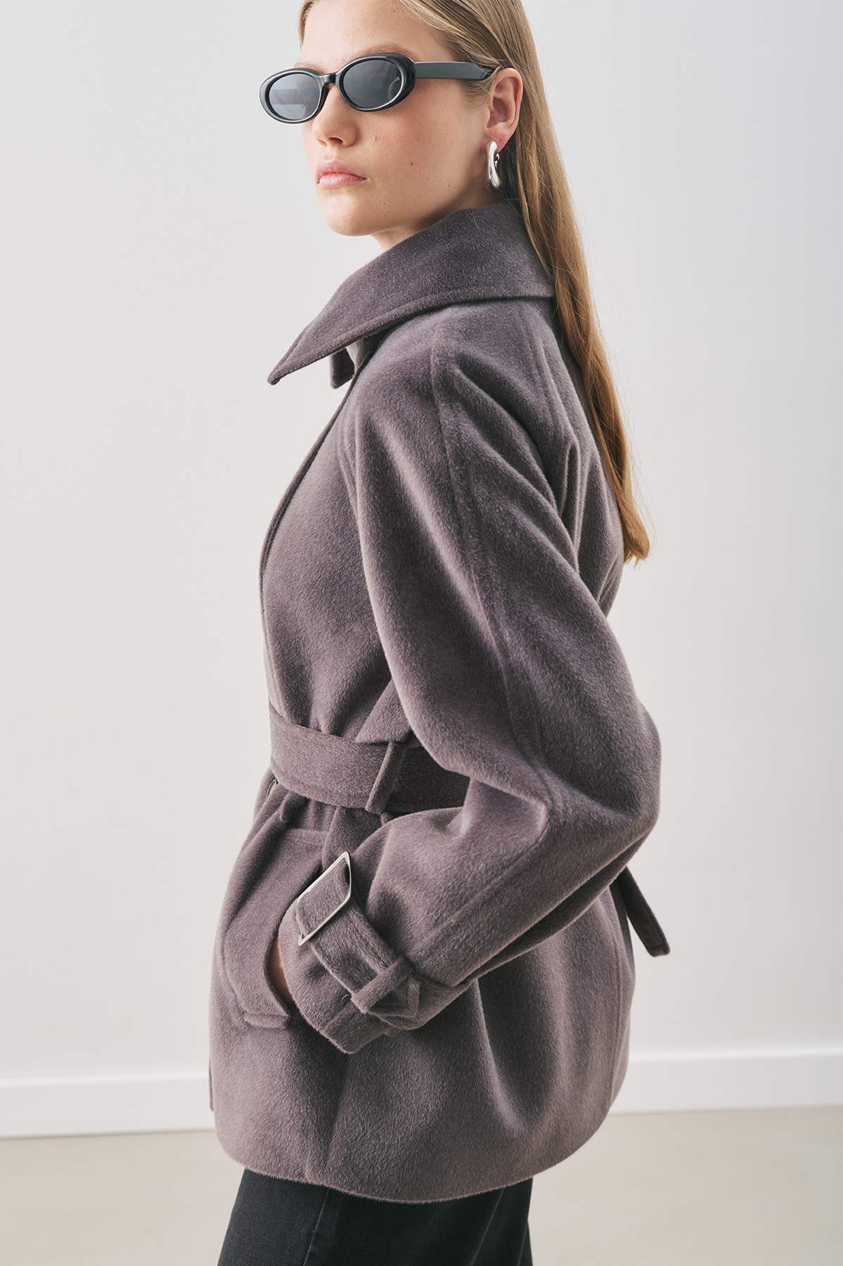 Norma kalıp,yüksek yaka-apolet detaylı,uzun kol,gizli pat kapamalı,belde kuşak detaylı,ara boy,düğme kapamalı, astarlı. Dokuma.Ana Kumaş: %50 Naylon,%50 Polyester