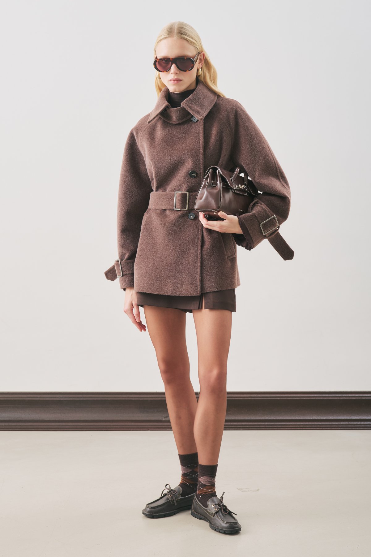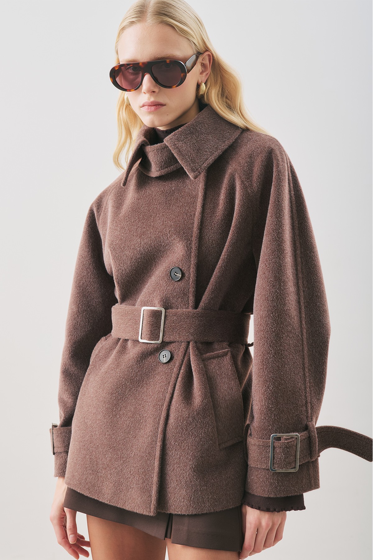 Norma kalıp,yüksek yaka-apolet detaylı,uzun kol,gizli pat kapamalı,belde kuşak detaylı,ara boy,düğme kapamalı, astarlı. Dokuma.Ana Kumaş: %50 Naylon,%50 Polyester