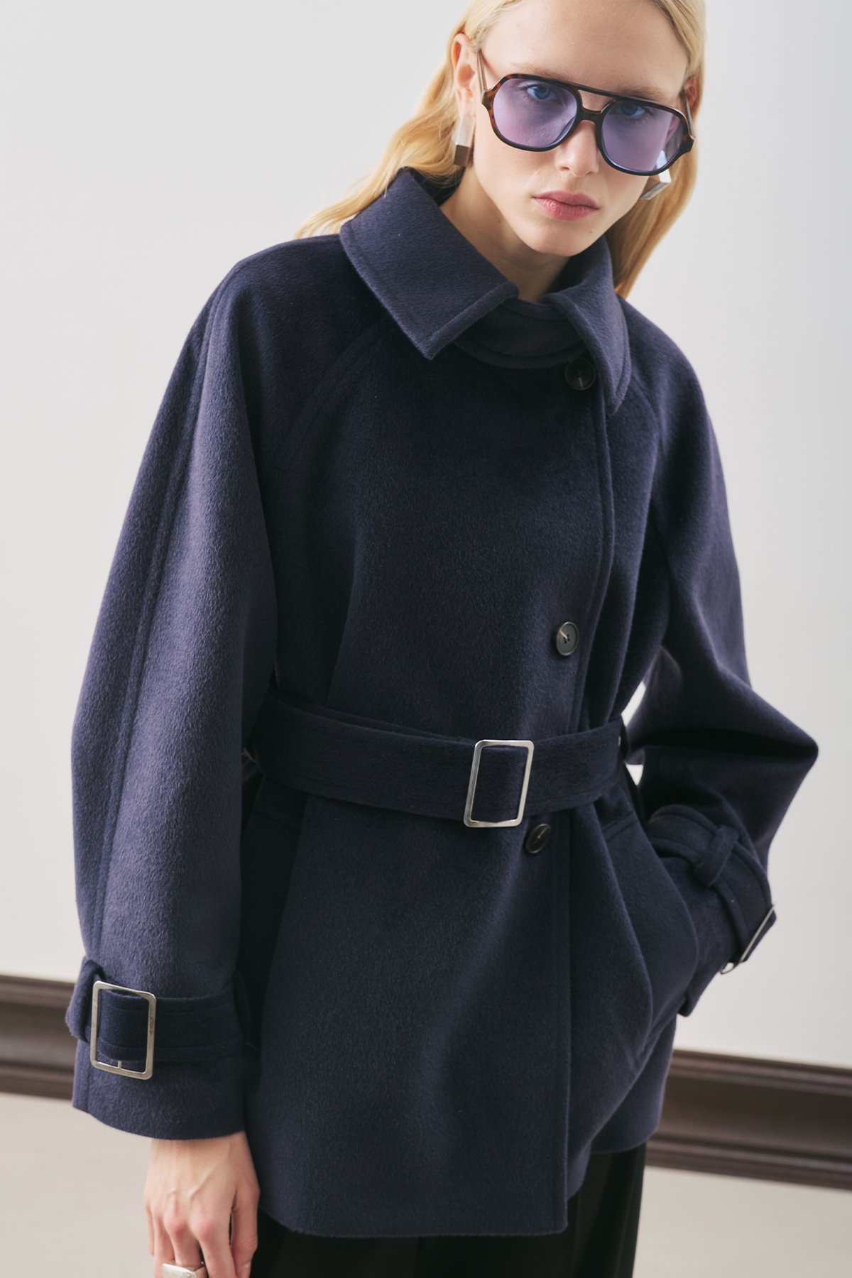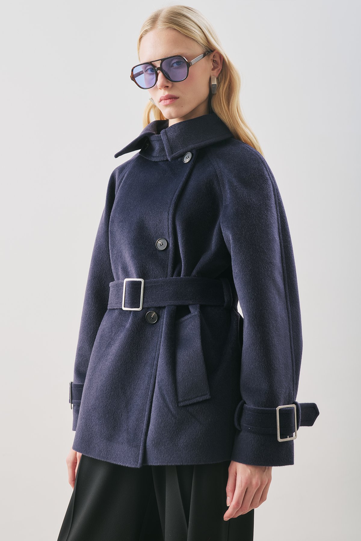 Norma kalıp,yüksek yaka-apolet detaylı,uzun kol,gizli pat kapamalı,belde kuşak detaylı,ara boy,düğme kapamalı, astarlı. Dokuma.Ana Kumaş: %50 Naylon,%50 Polyester