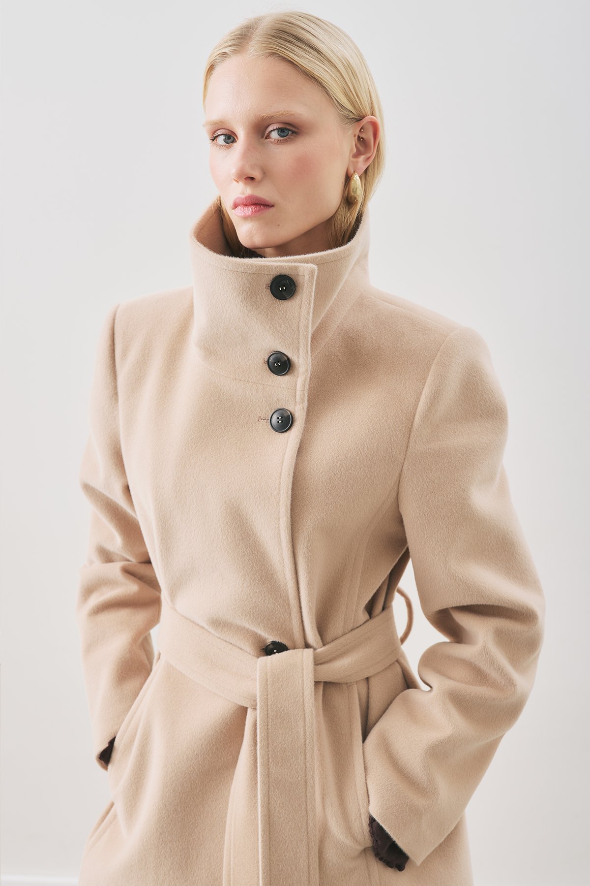 PREMIUM KAŞE TRENCH TASARIMLI KABAN BEJ