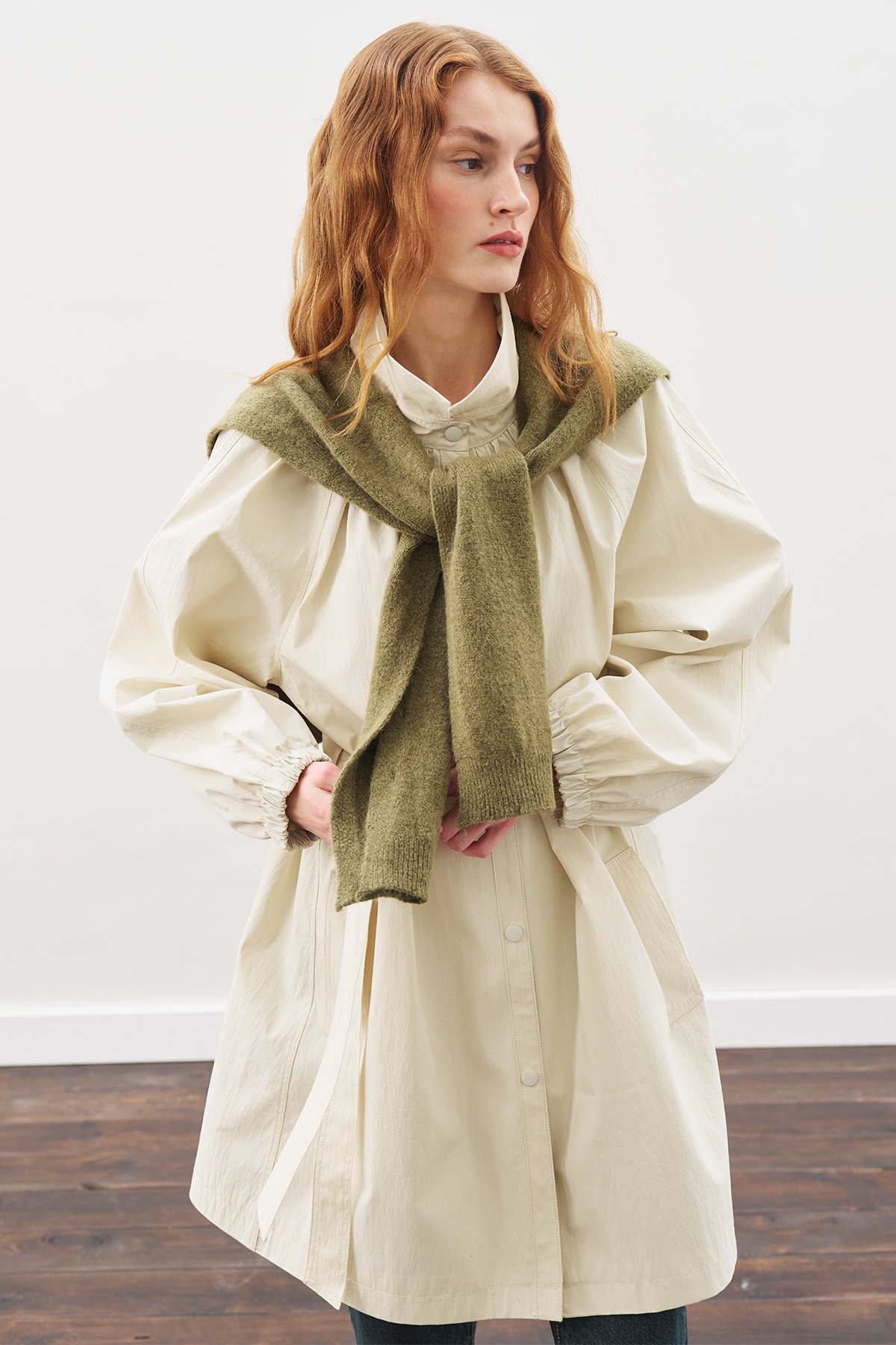 OVERSIZE BAĞLAMALI MİDİ TRENÇKOT TAŞ