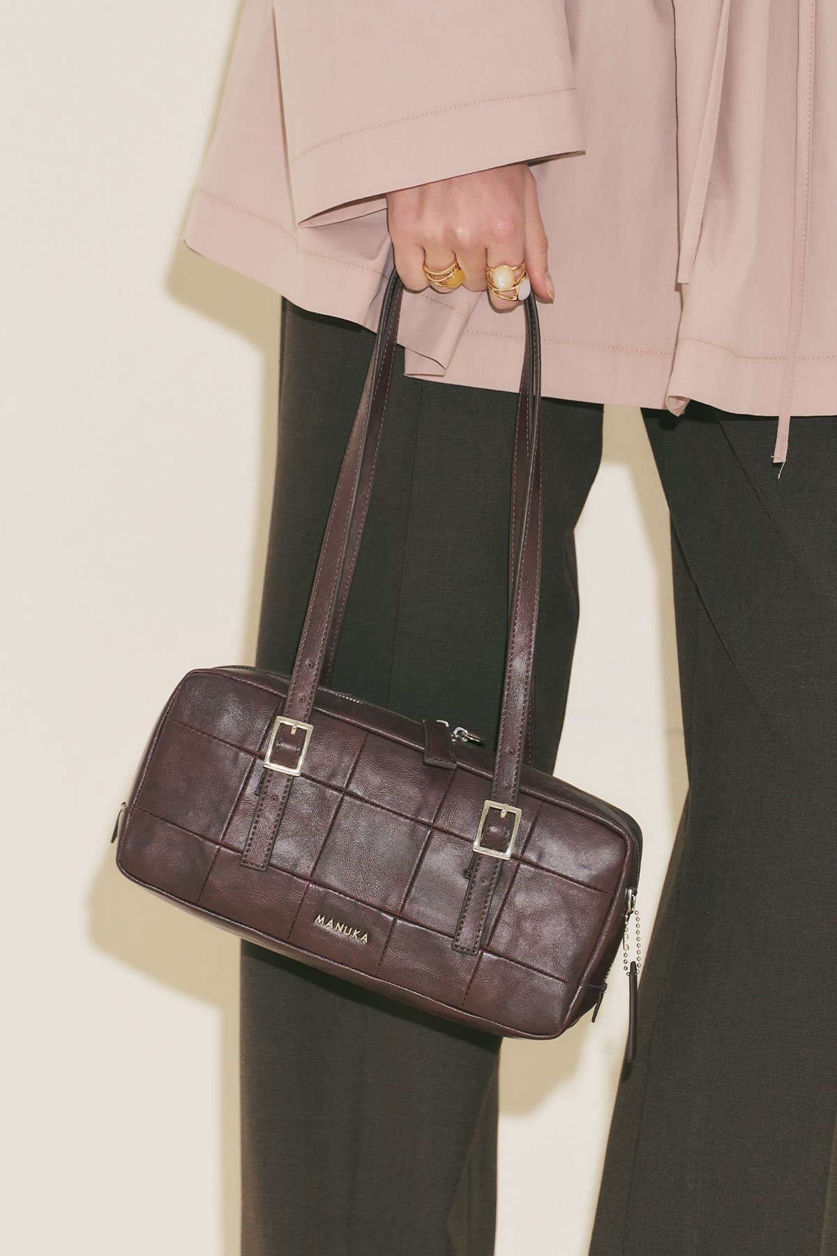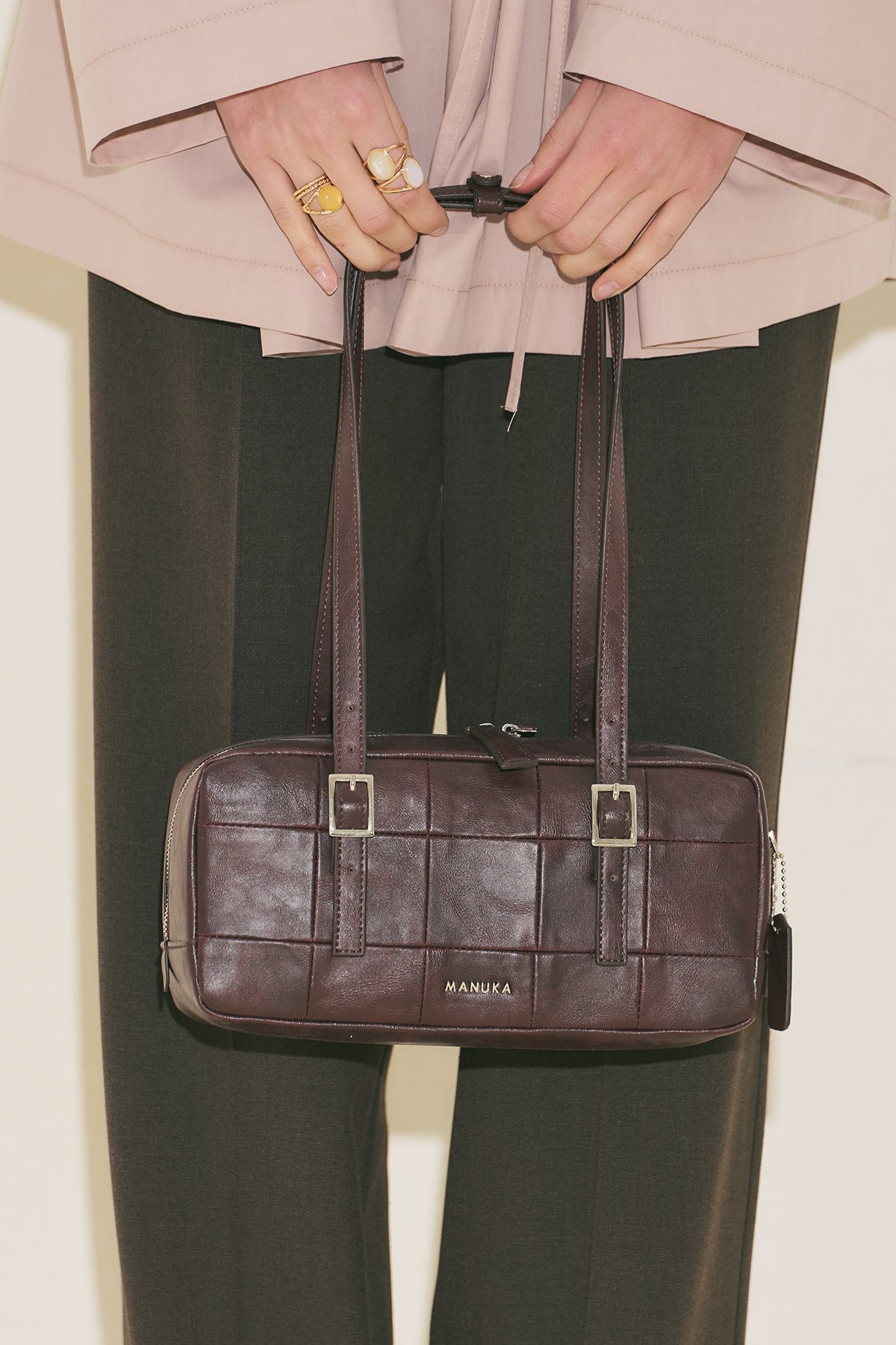 Orta boy, kare görünümlü, içte cep detaylı, ayarlanabilir askı, manuka logolu, etiket detaylı, fermuar kapamalı, suni deri, astarlı.