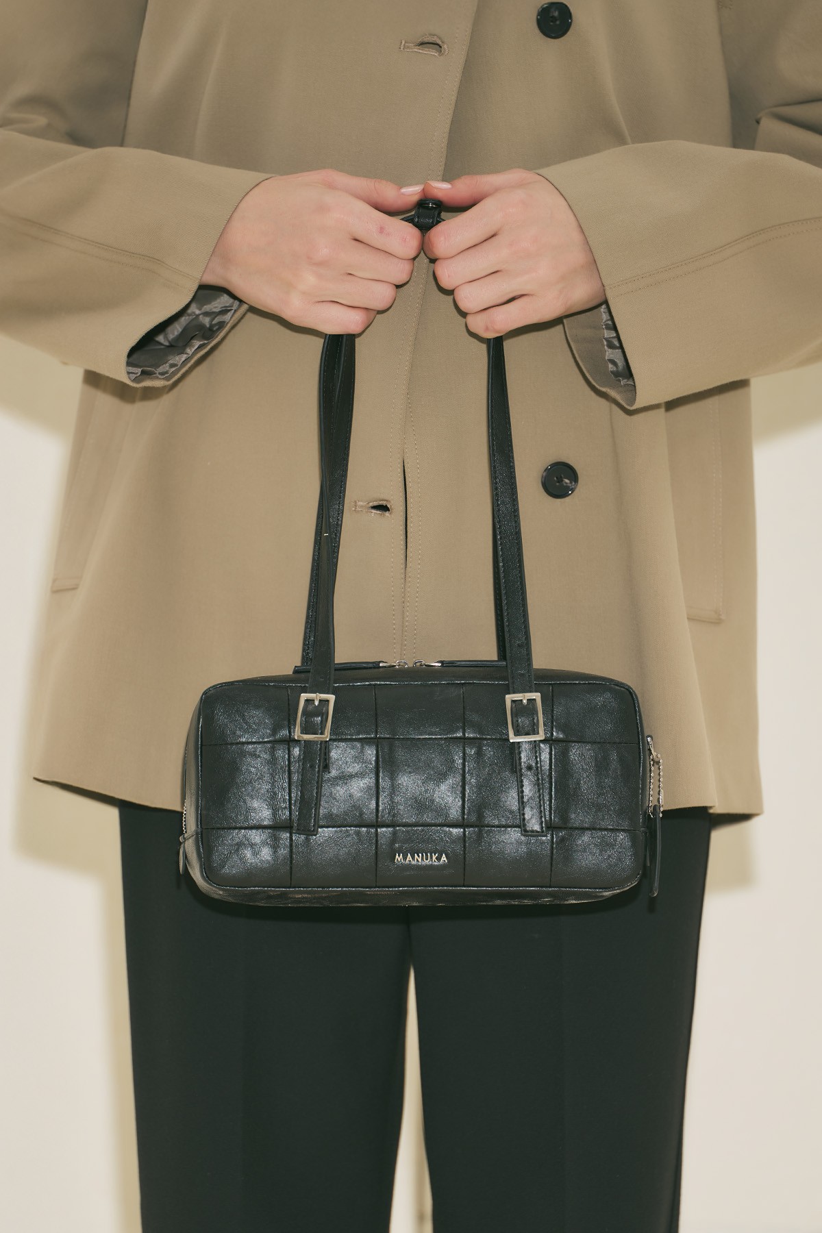 Orta boy, kare görünümlü, içte cep detaylı, ayarlanabilir askı, manuka logolu, etiket detaylı, fermuar kapamalı, suni deri, astarlı.