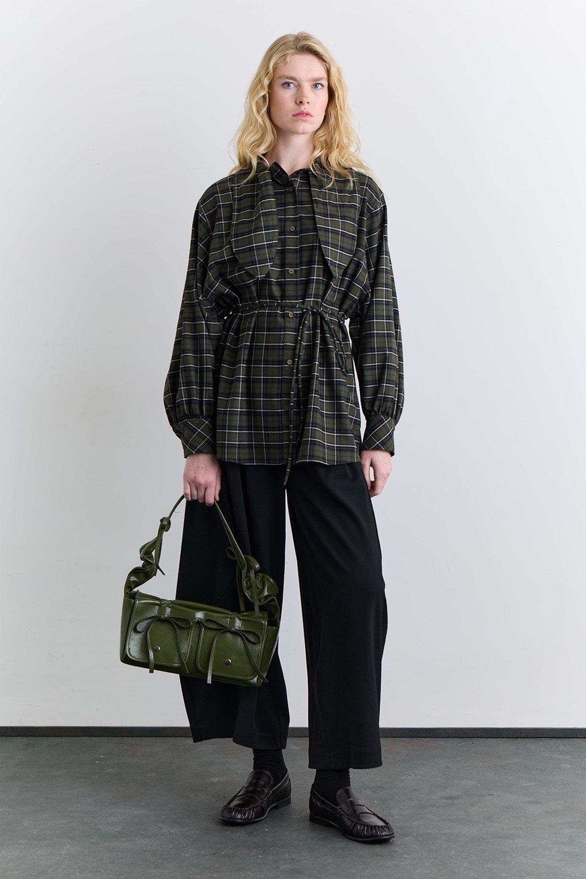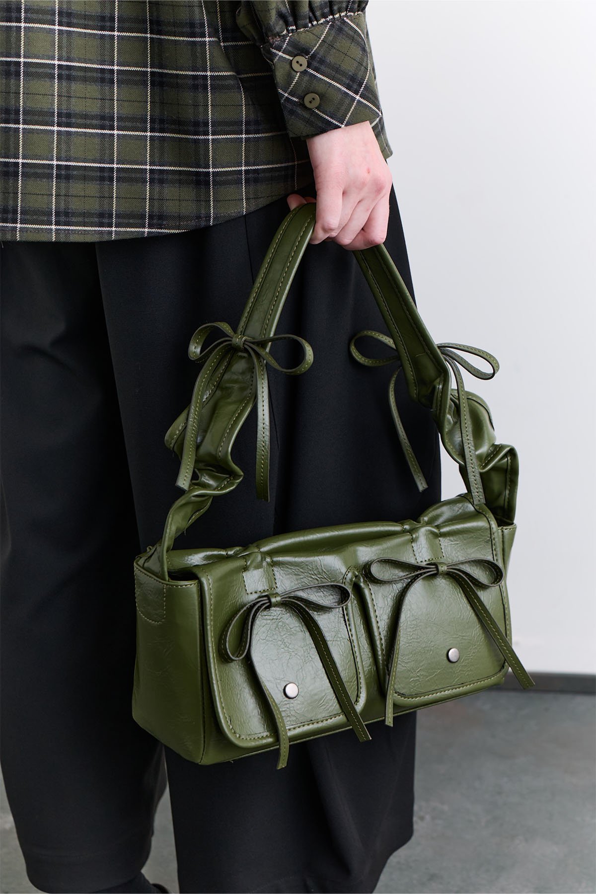 Orta boy, kurdele detaylı çanta, içte cep detaylı, mıknatıs kapama, suni deri, astarlı.
