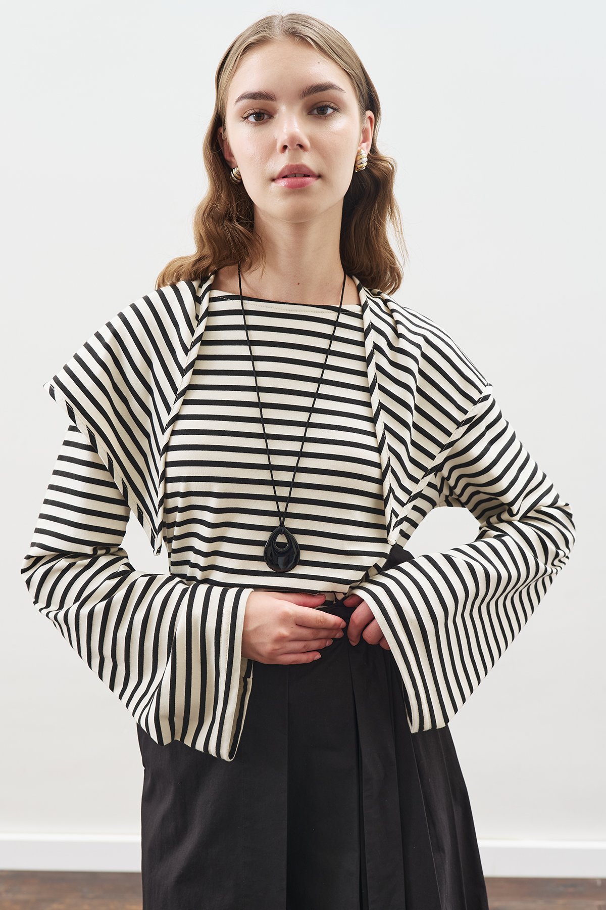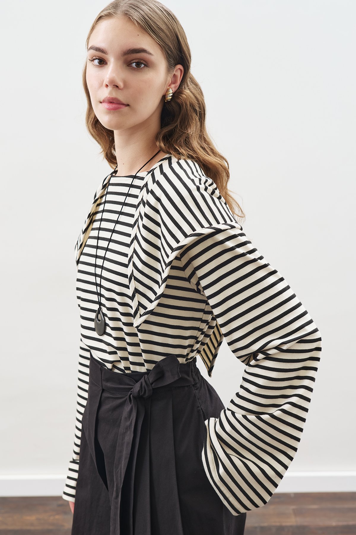 ŞAL DETAYLI ÇİZGİLİ TSHIRT SİYAH ürününde stoğu olan mağazalarımız.
