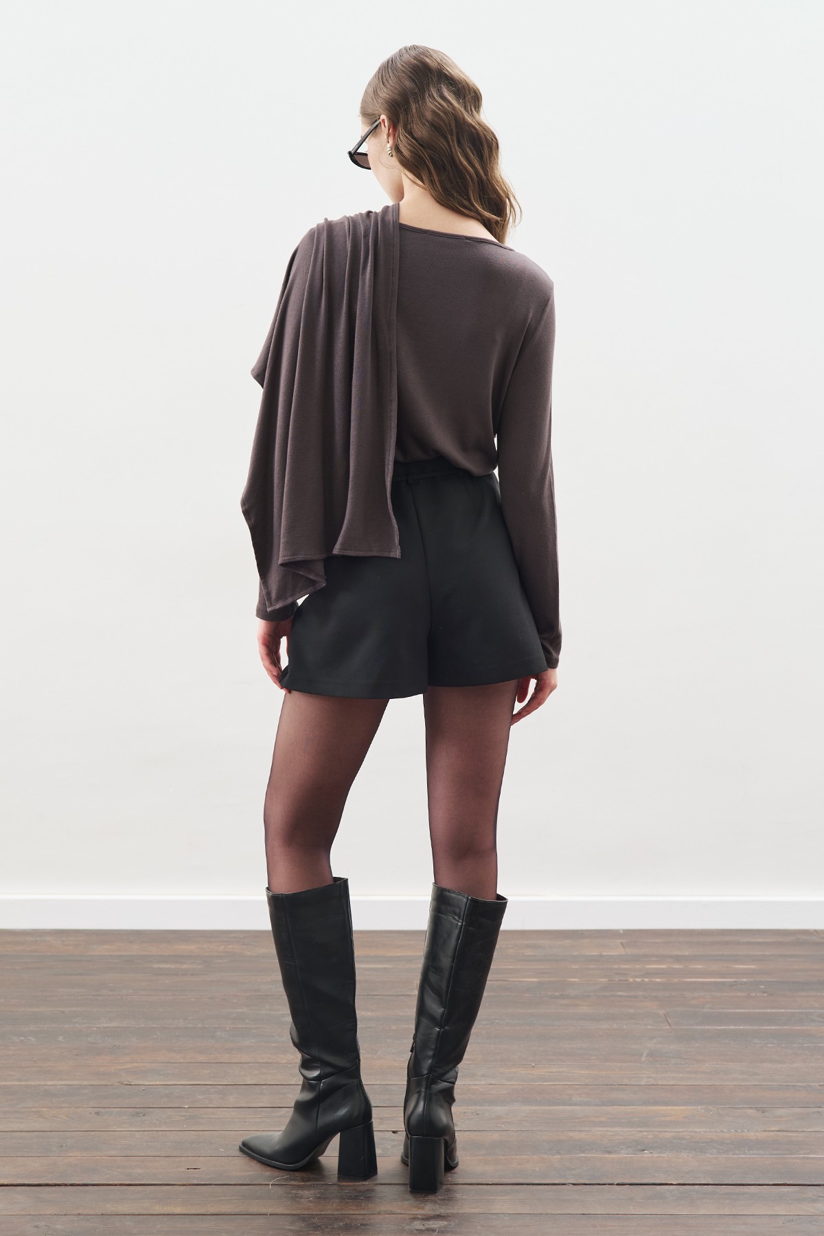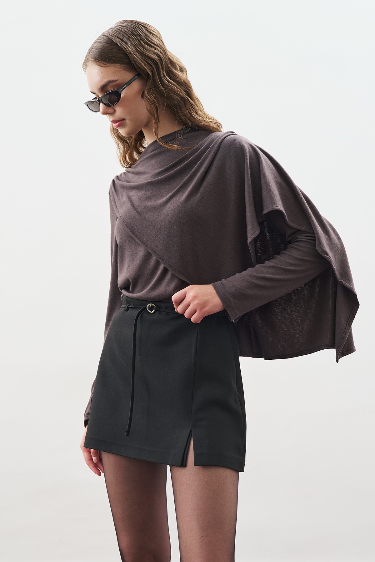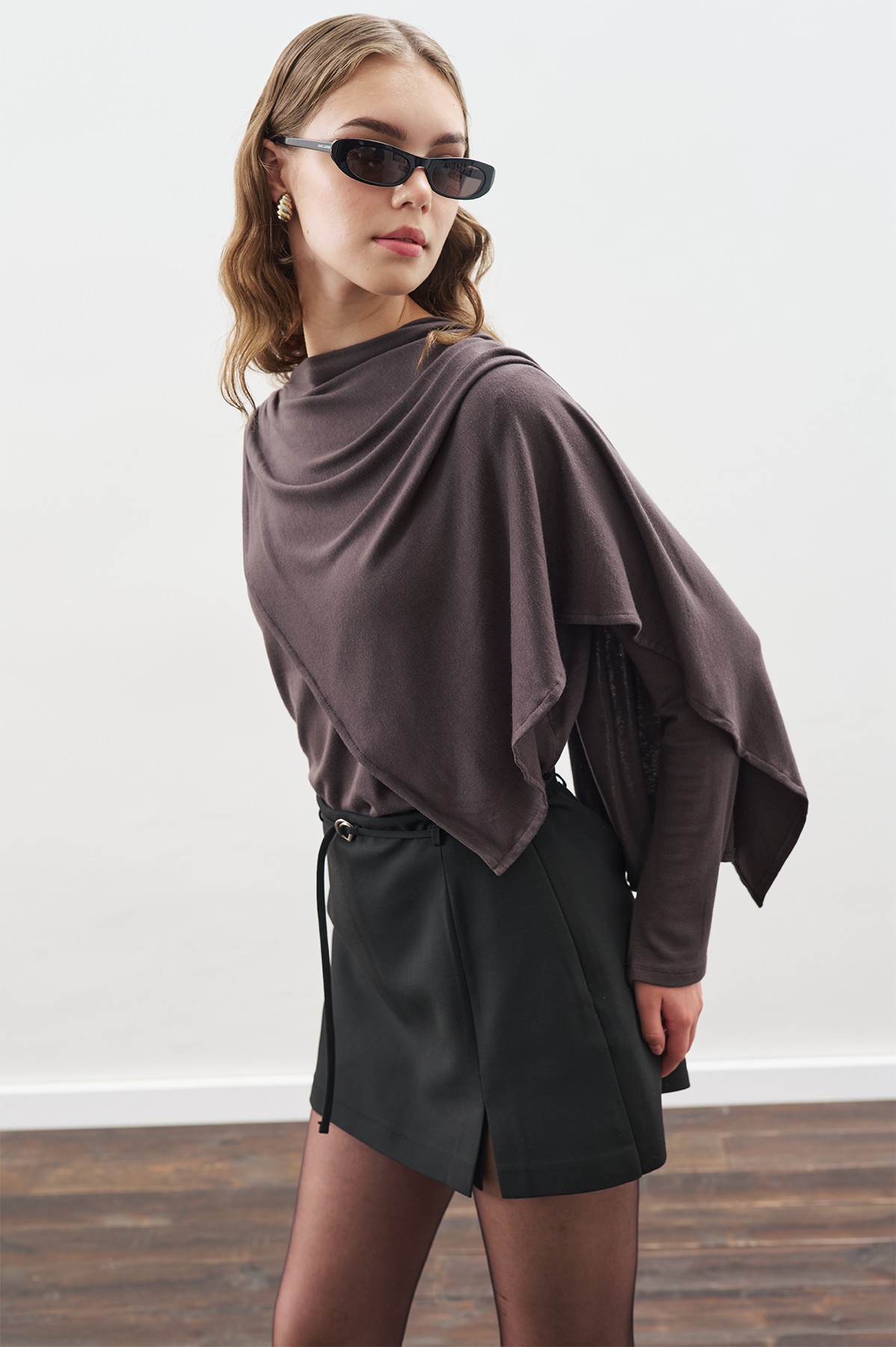 SHAWL DETAIL FLOWING BLOUSE ANTHRACITE FEATURES