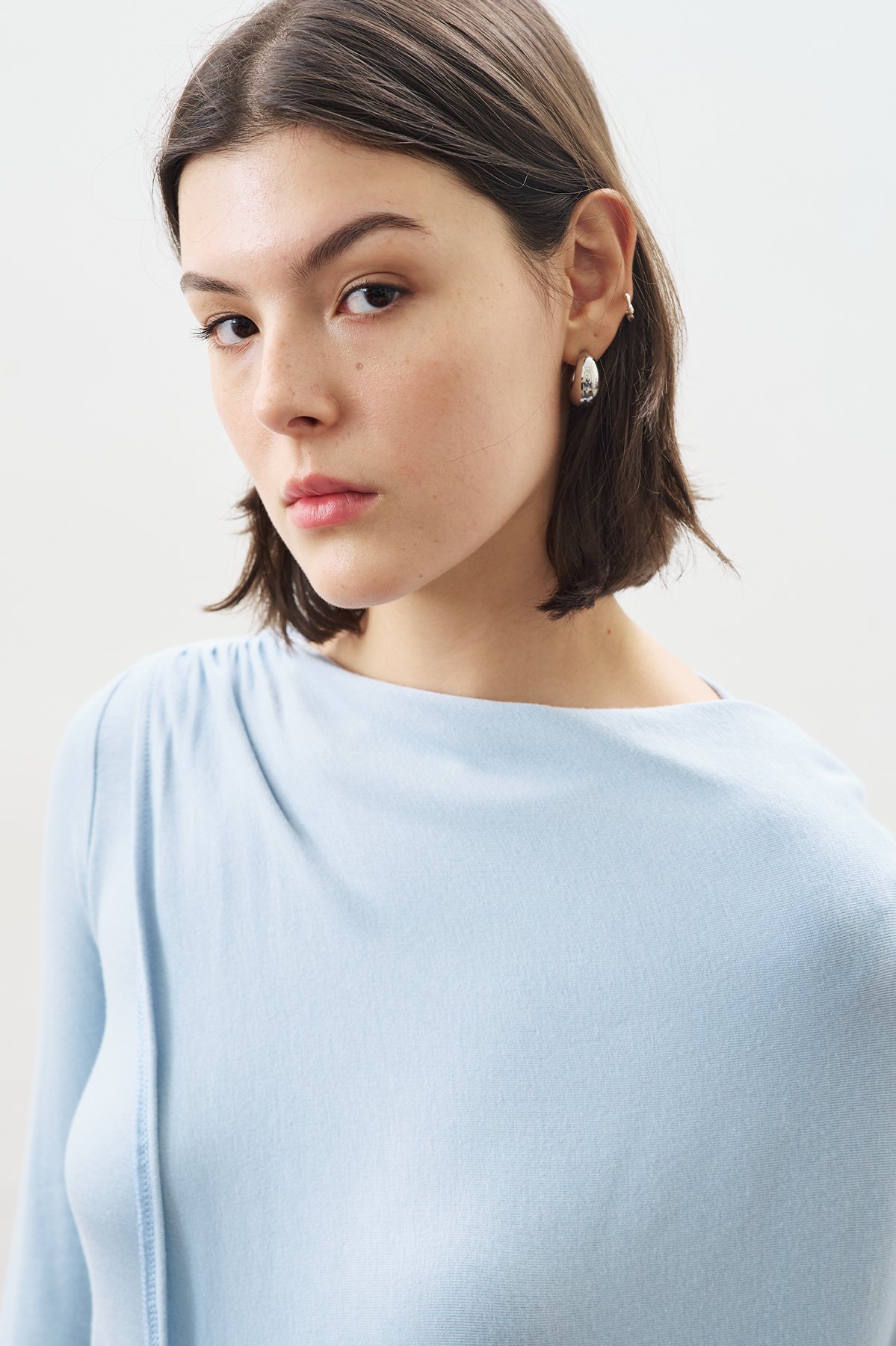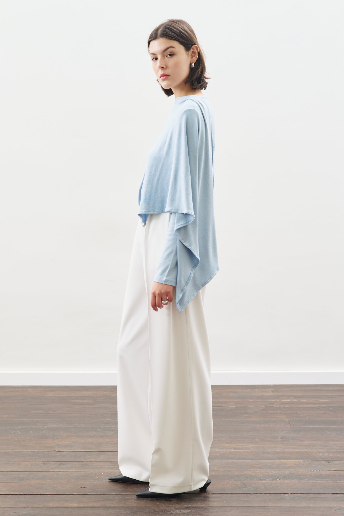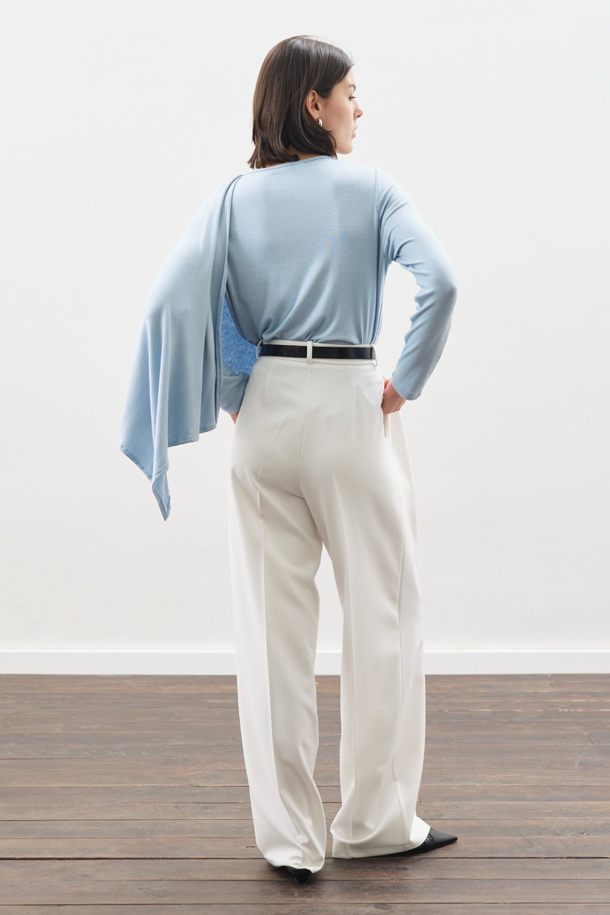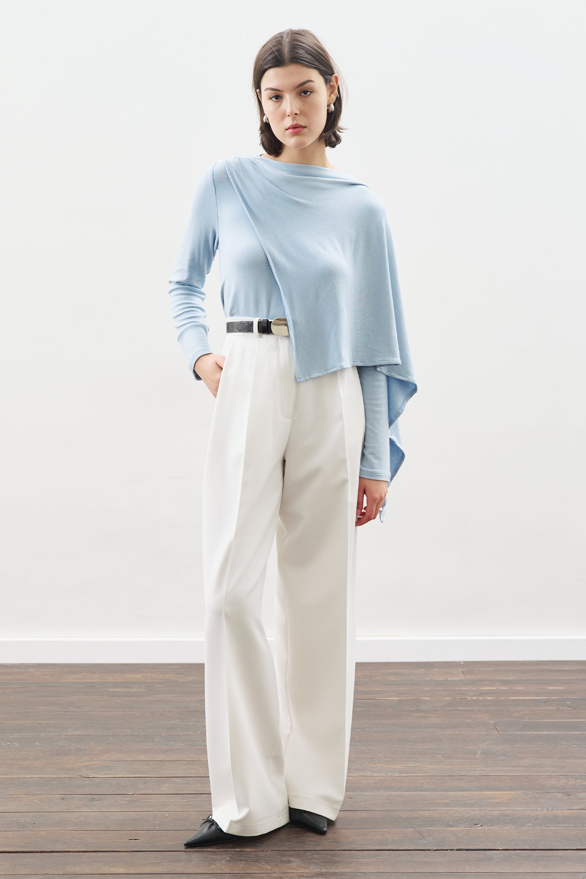 ŞAL DETAYLI DÖKÜMLÜ BLUZ MAVİ ÖZELLİKLERİ
