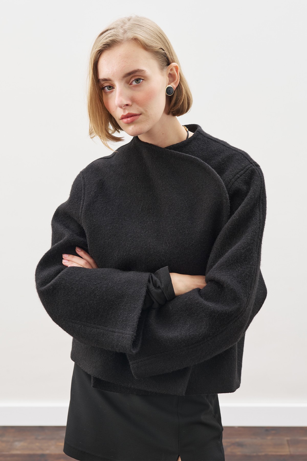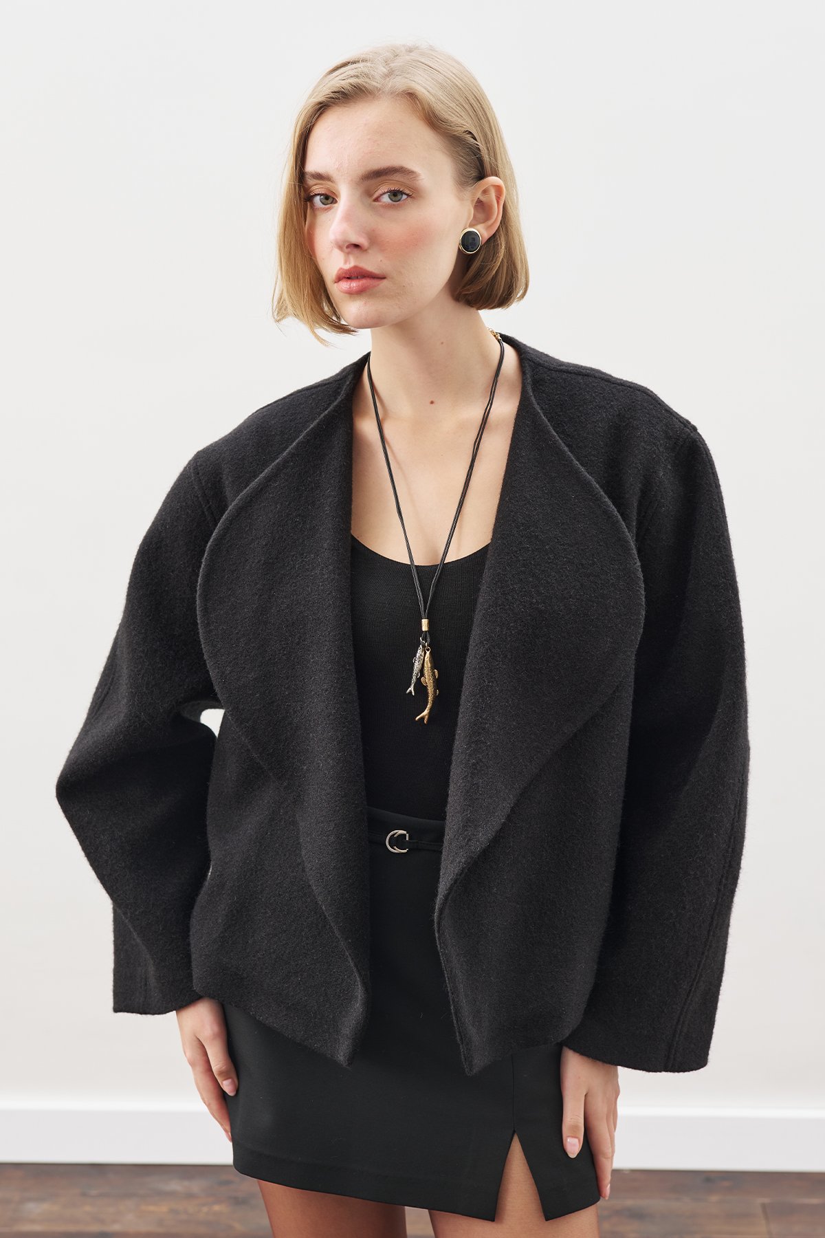 SHORT WOOL JACKET BLACK ürününde stoğu olan mağazalarımız.