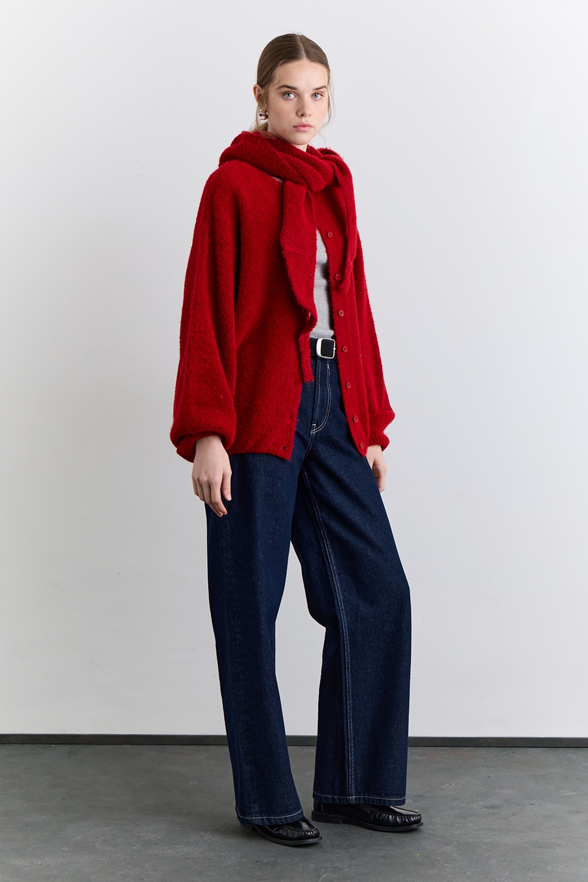 SOFT TEXTURED BUTTONED CARDIGAN RED