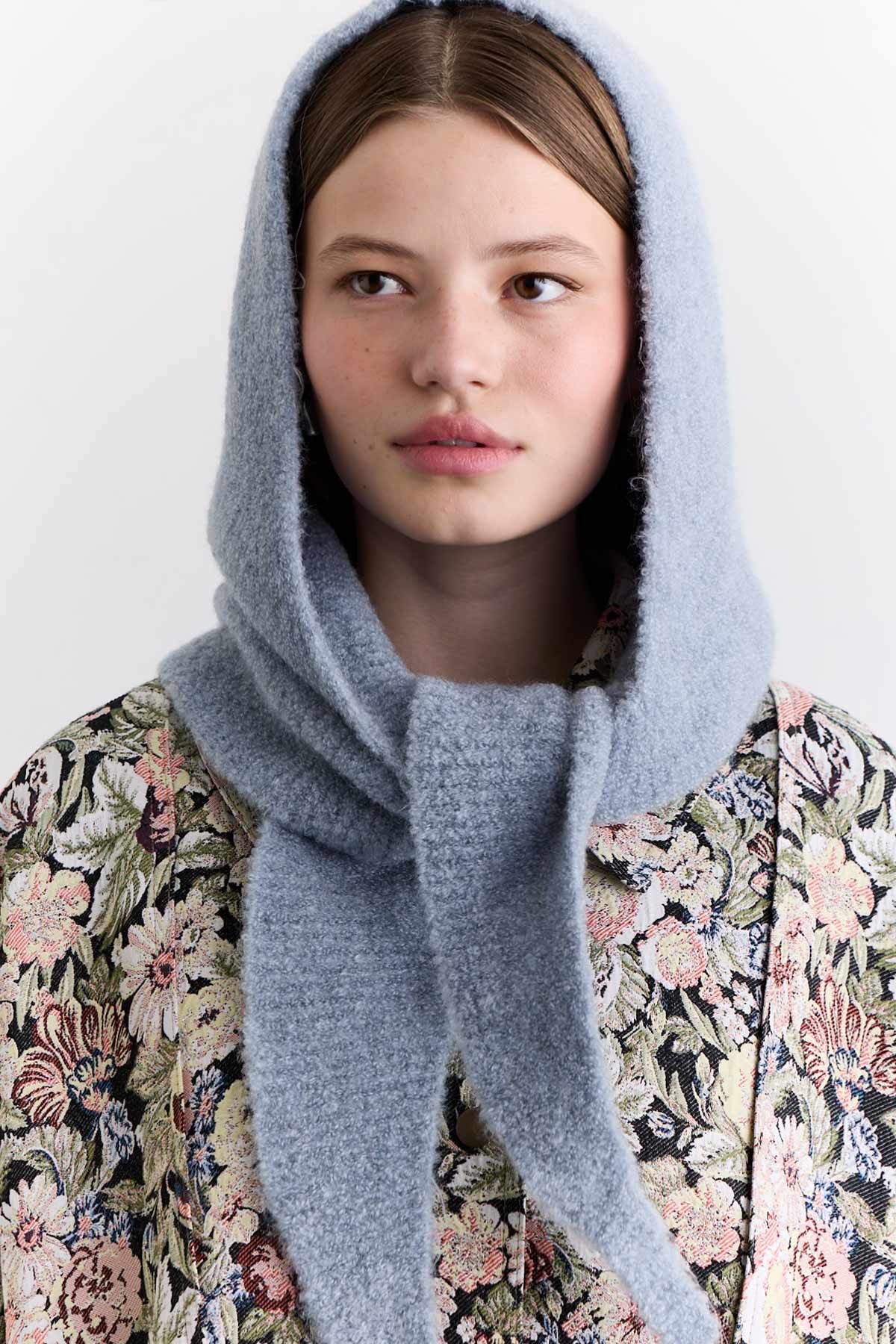 SOFT TEXTURED TIE-DETAIL HOOD BLUE