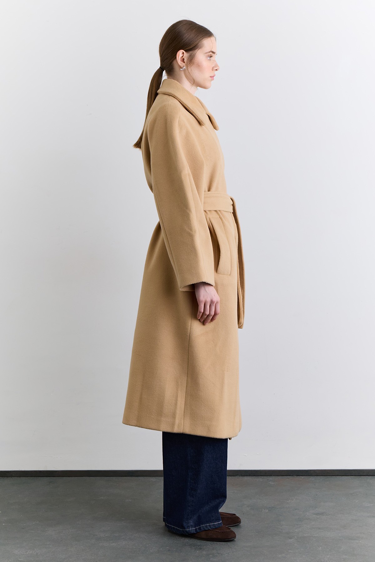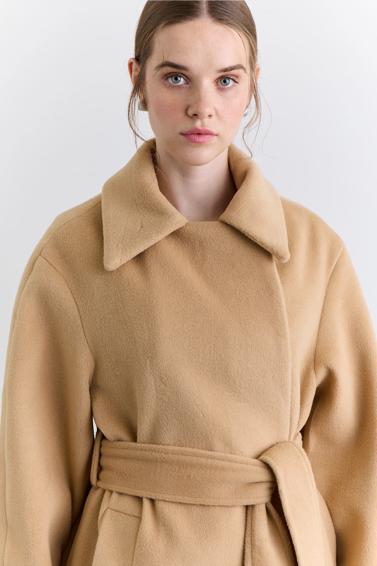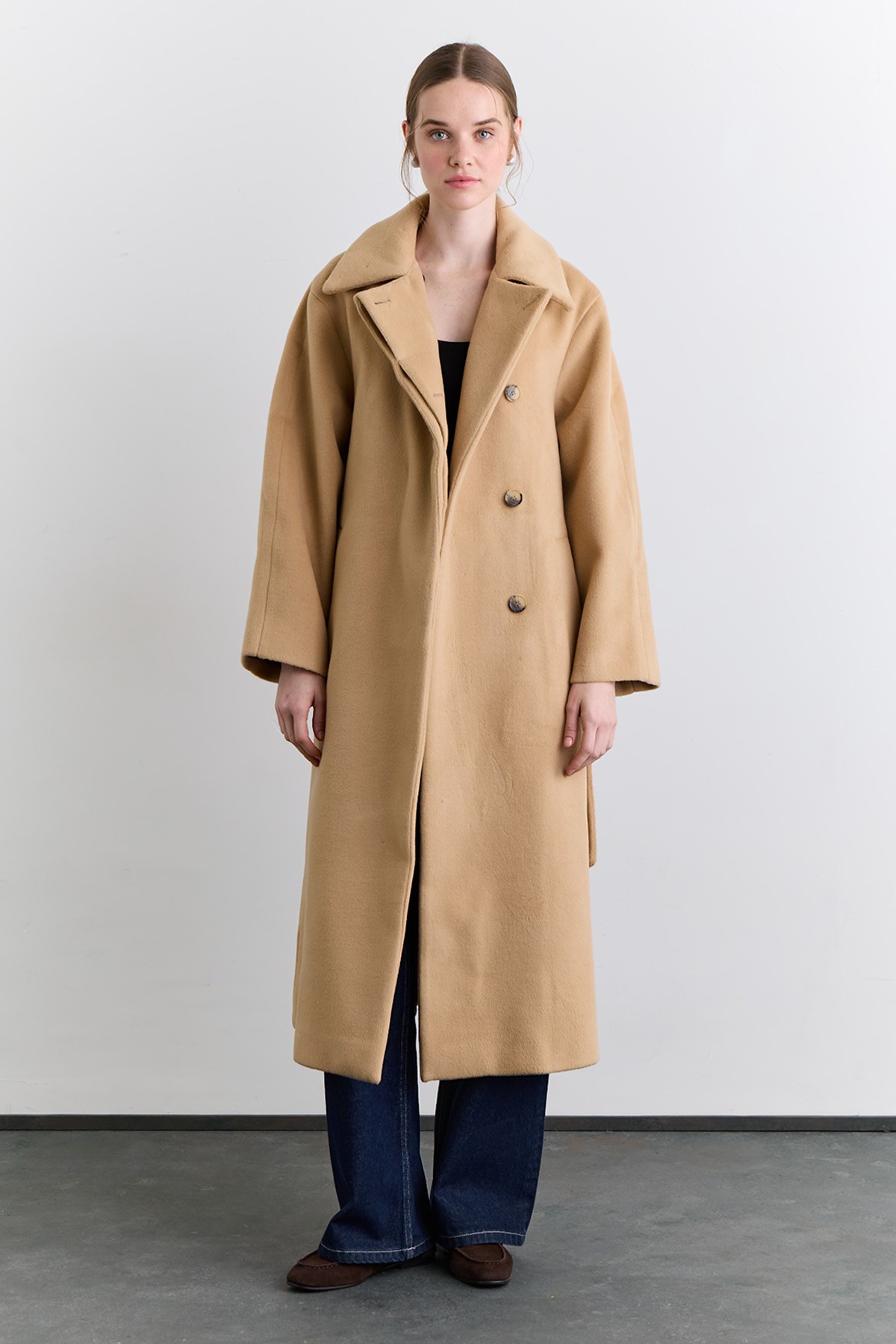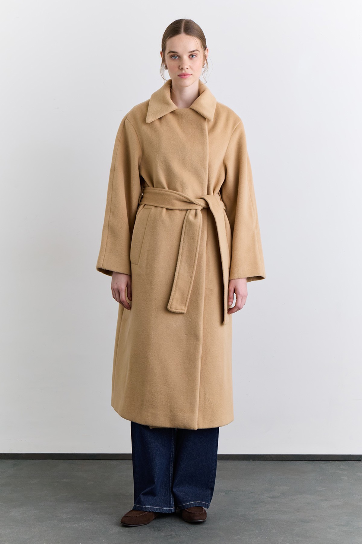 PLAIN CLOSURE WOOL COAT CAMEL