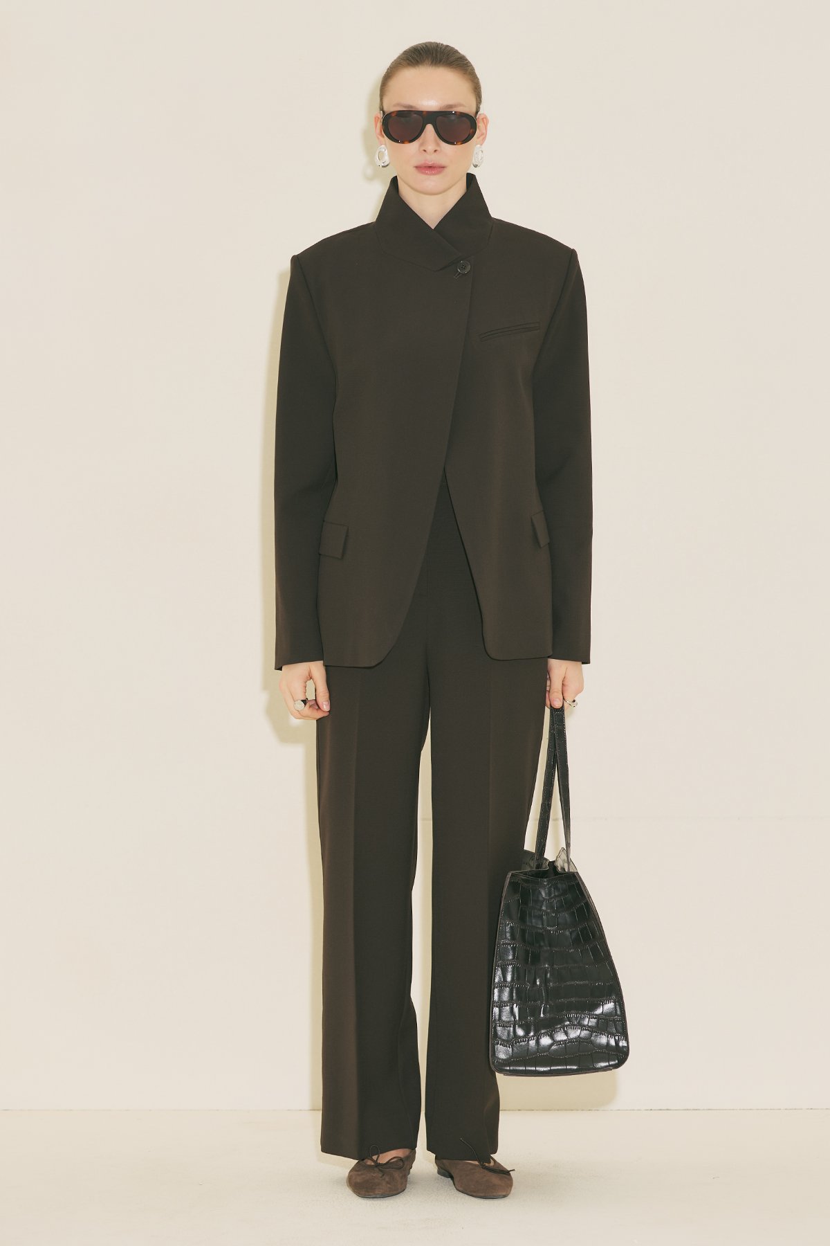Straight form, tam boy, yüksek bel, geniş paça, cepli, düğme ve fermuar kapamalı.