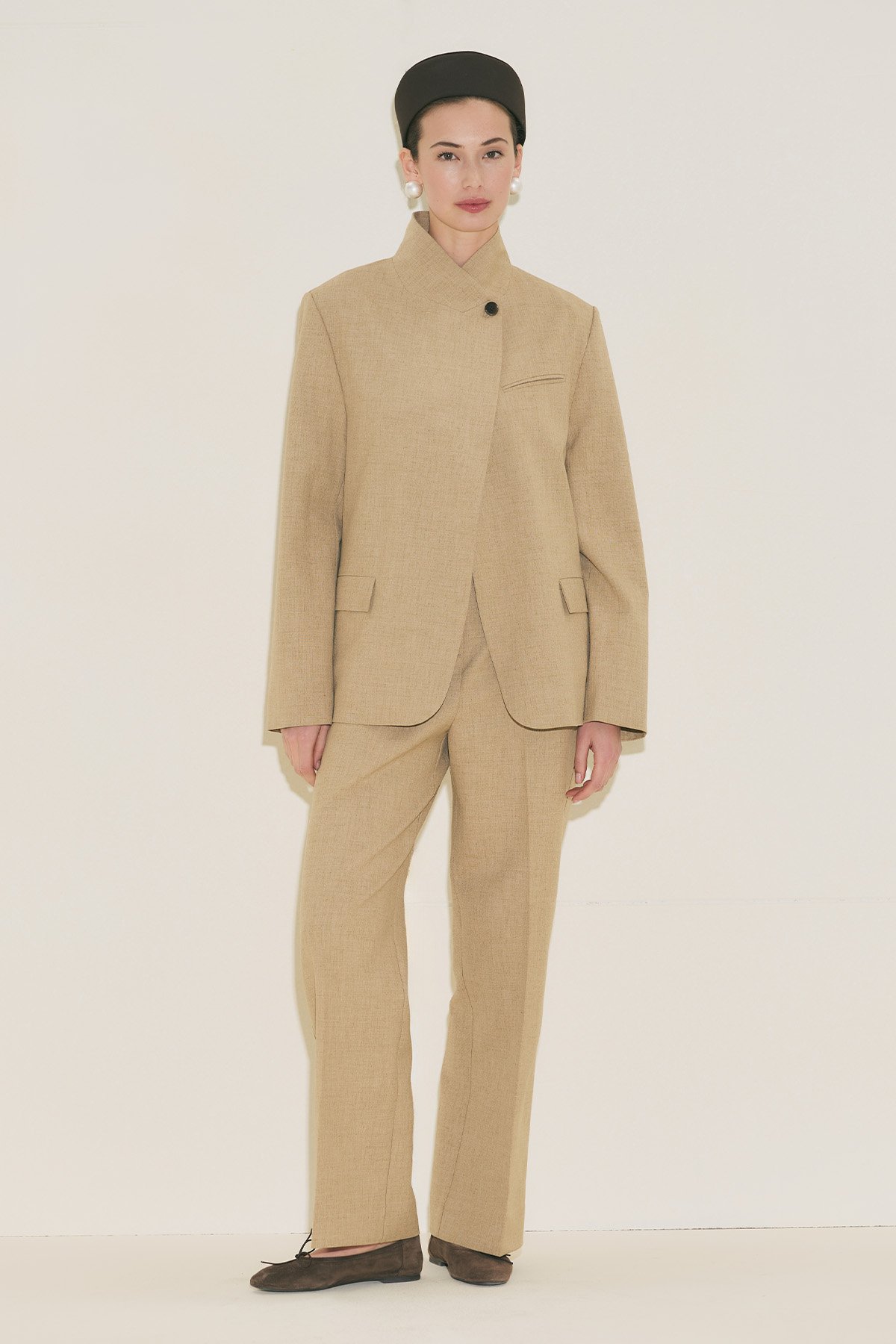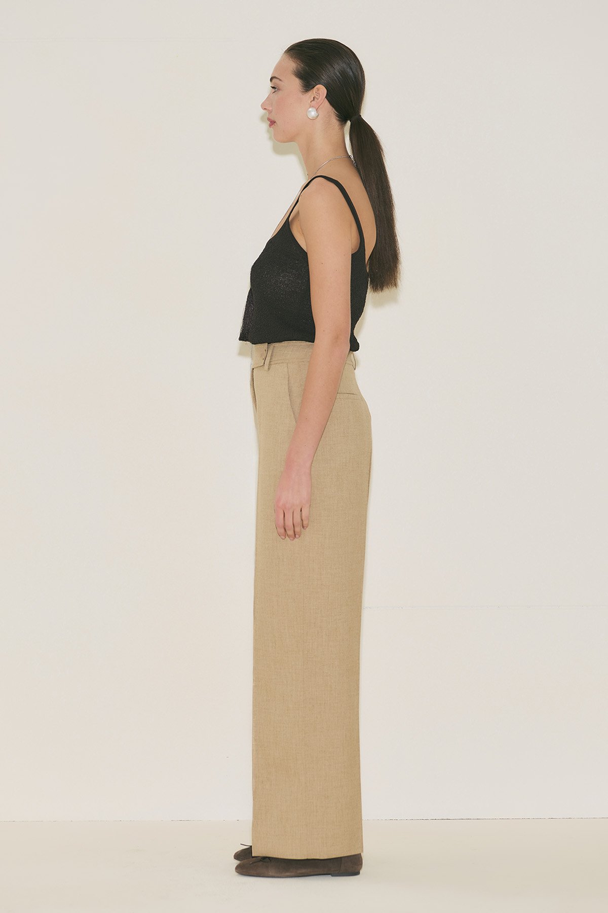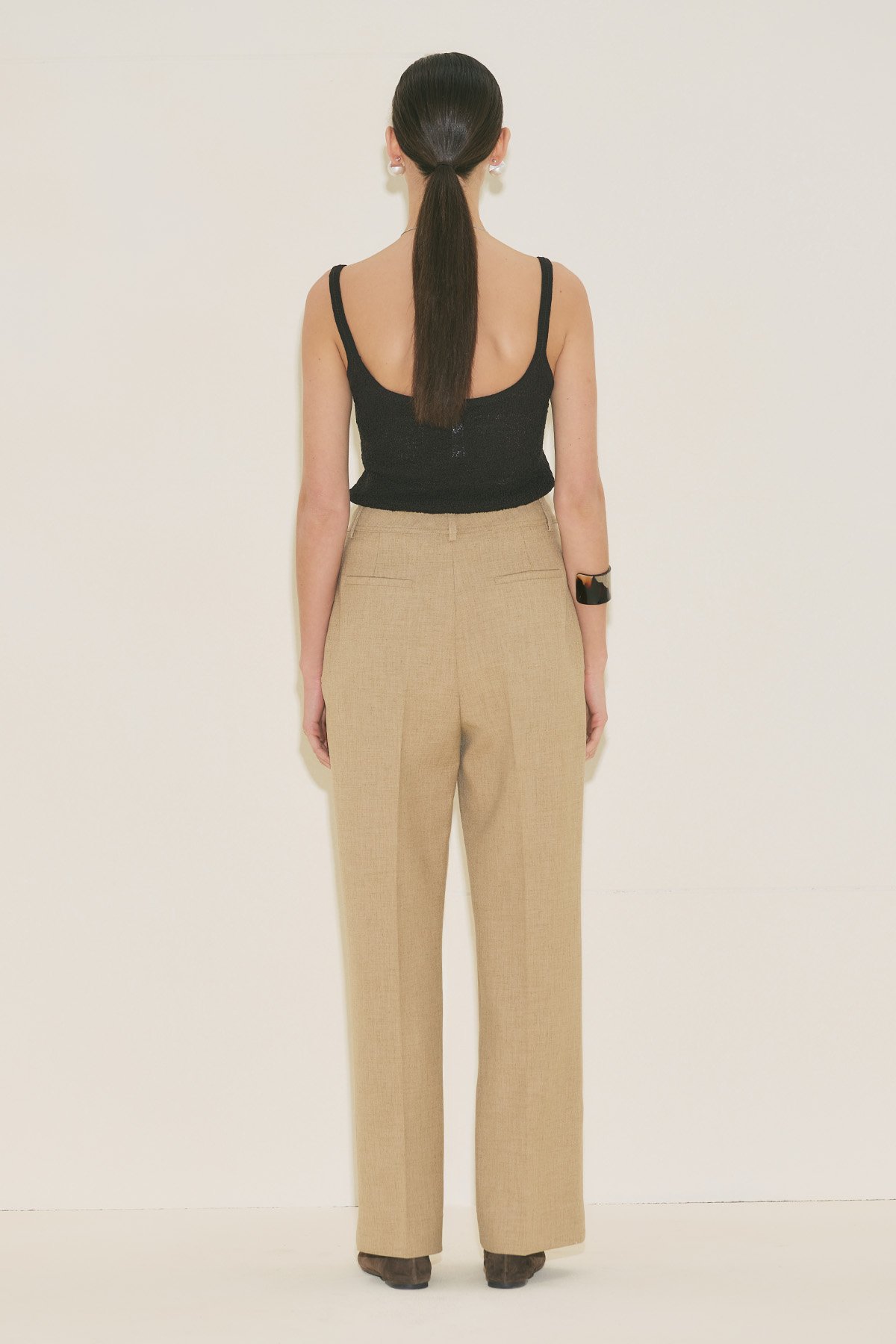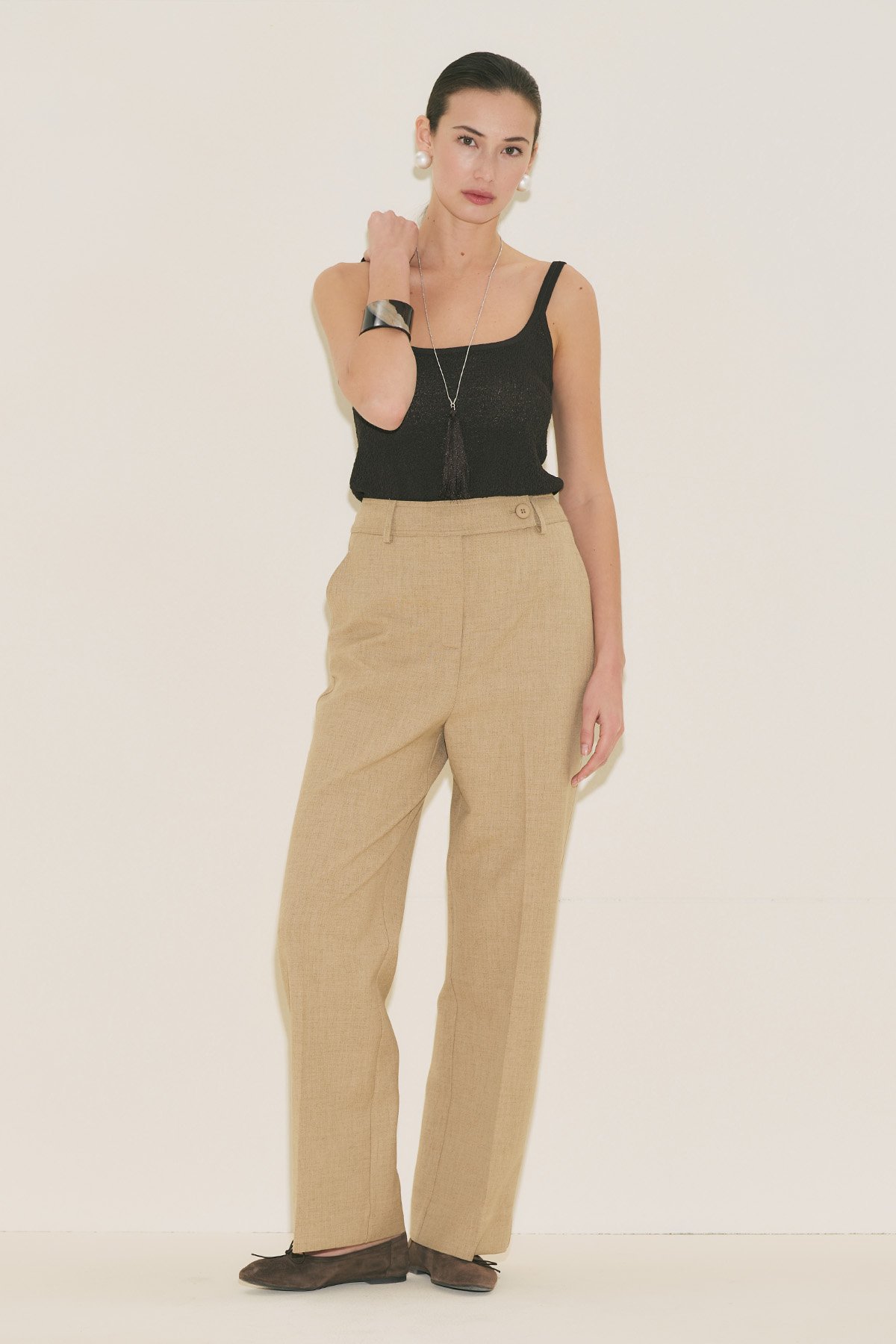 Straight form, tam boy, yüksek bel, geniş paça, cepli, düğme ve fermuar kapamalı.