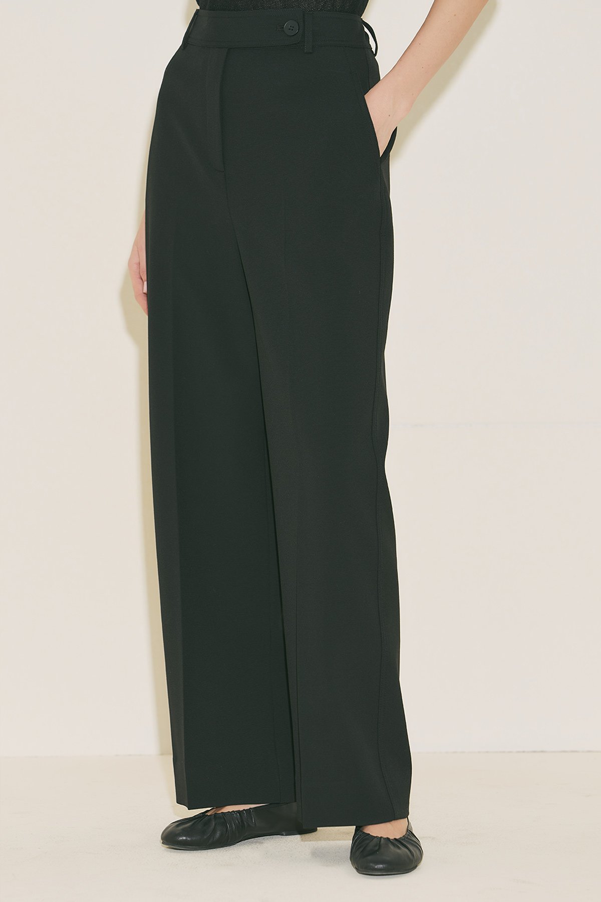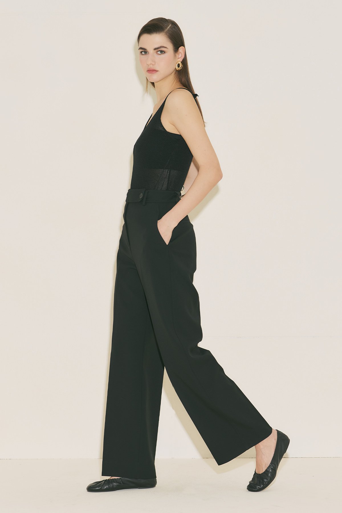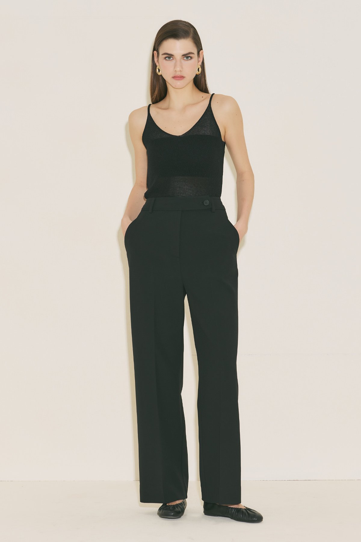 Straight form, tam boy, yüksek bel, geniş paça, cepli, düğme ve fermuar kapamalı.