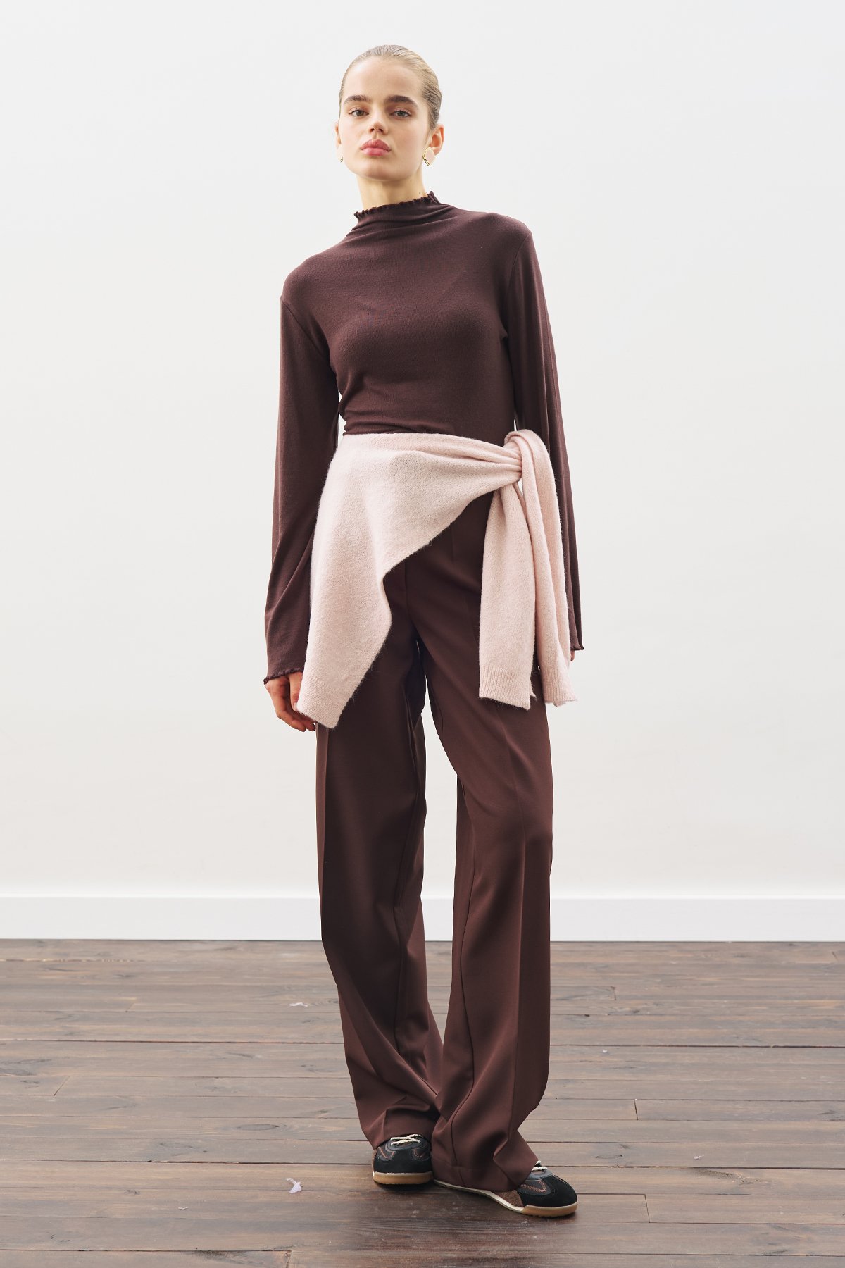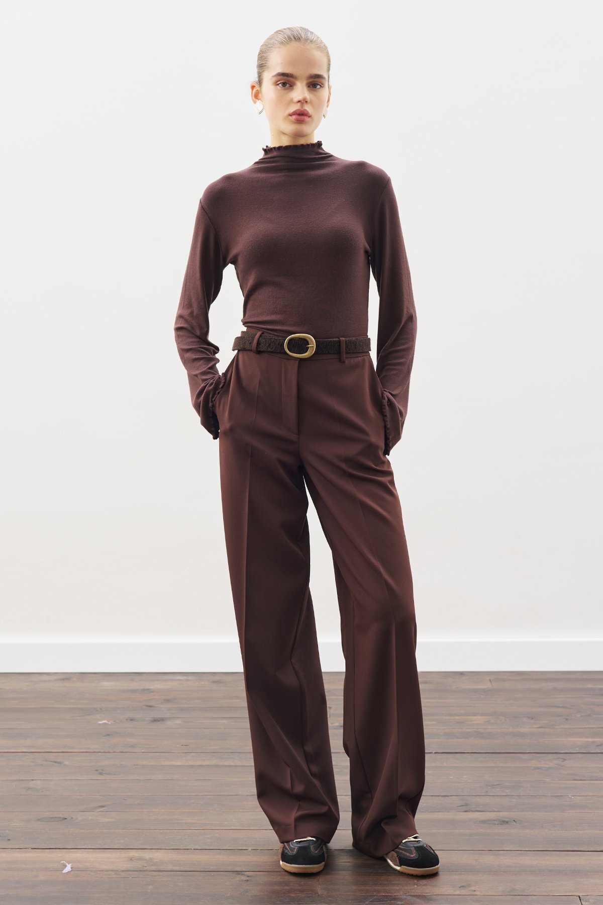 STRAIGHT LEG LONG PANTS LIGHT BROWN