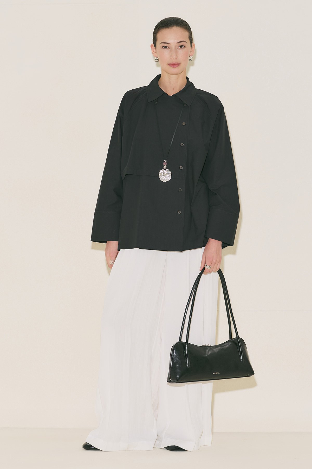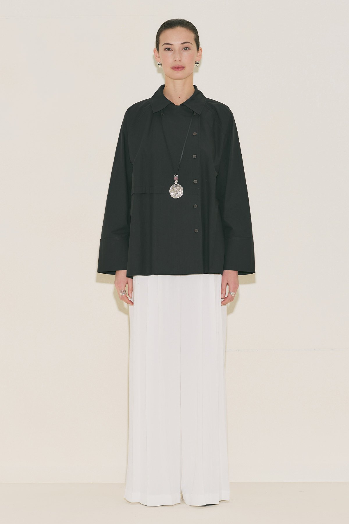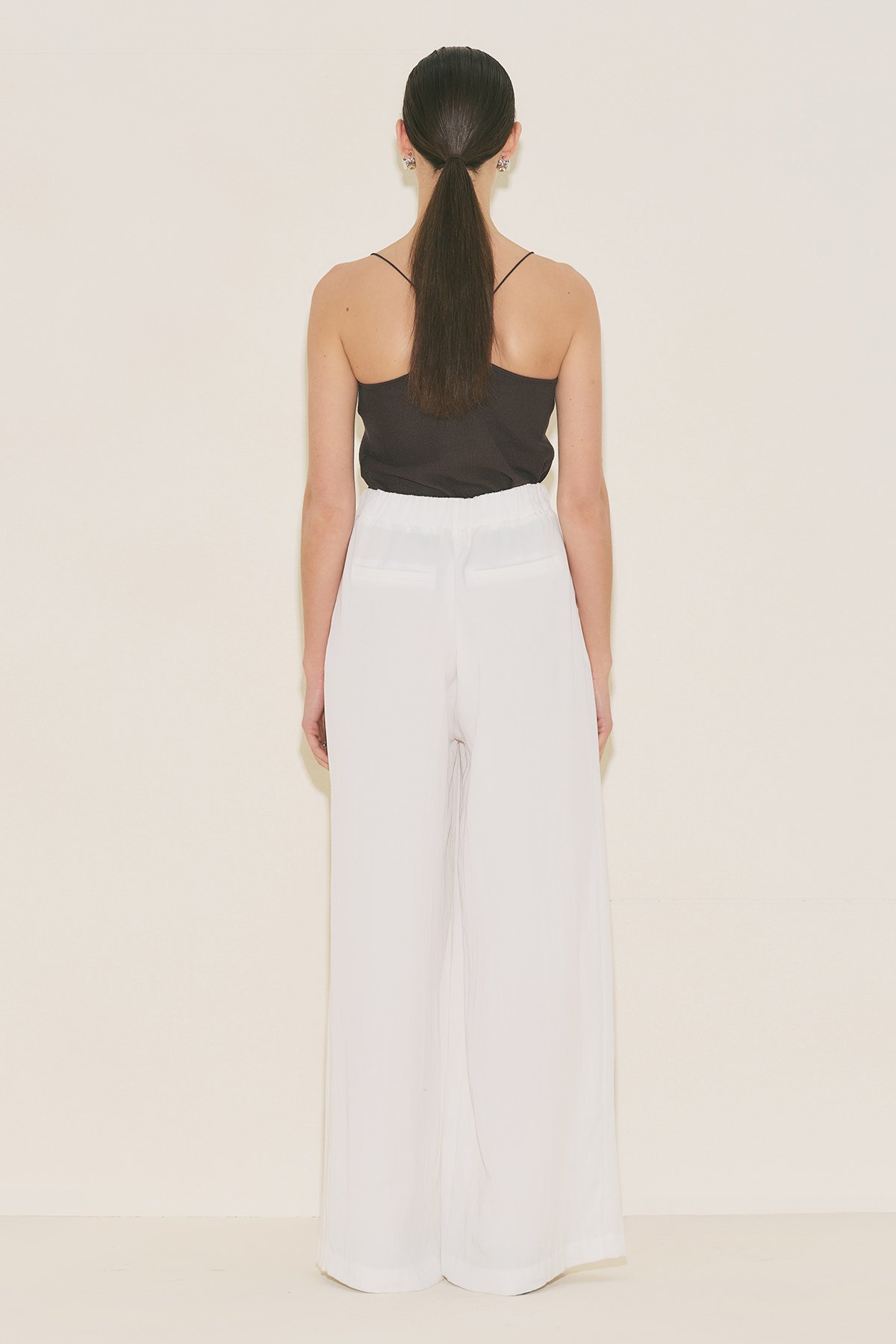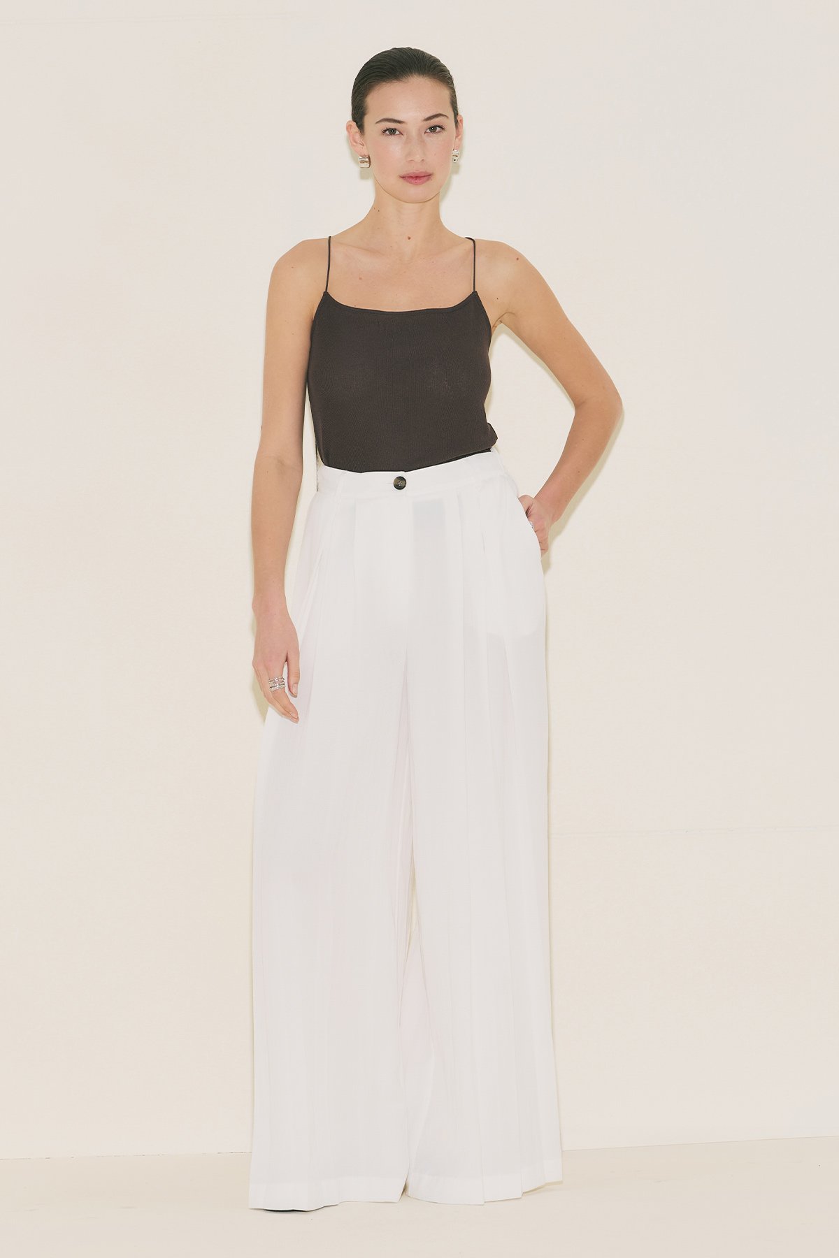 Geniş kalıp form, tam boy, yüksek bel, geniş paça form, geniş pileli, cepli, düğme ve fermuar kapamalı.
