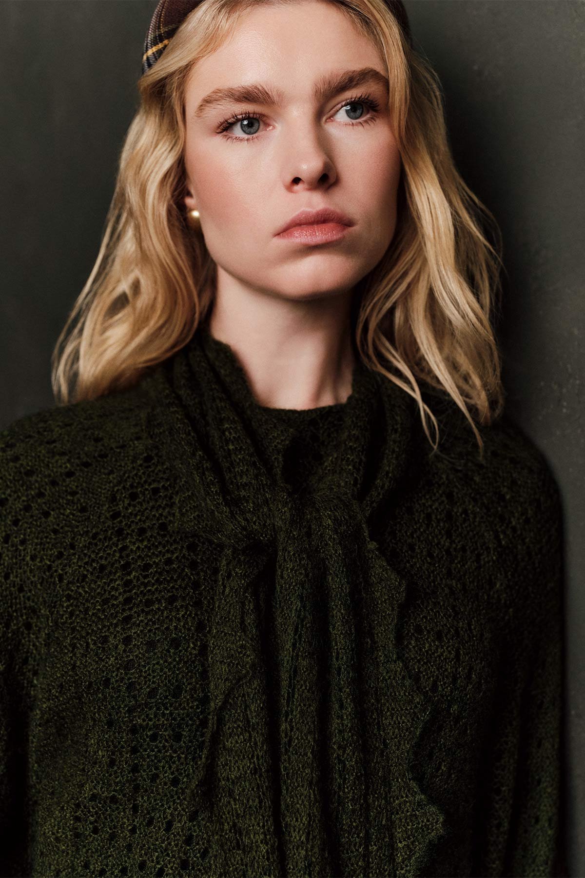 TIE-NECK LACY SWEATER GREEN