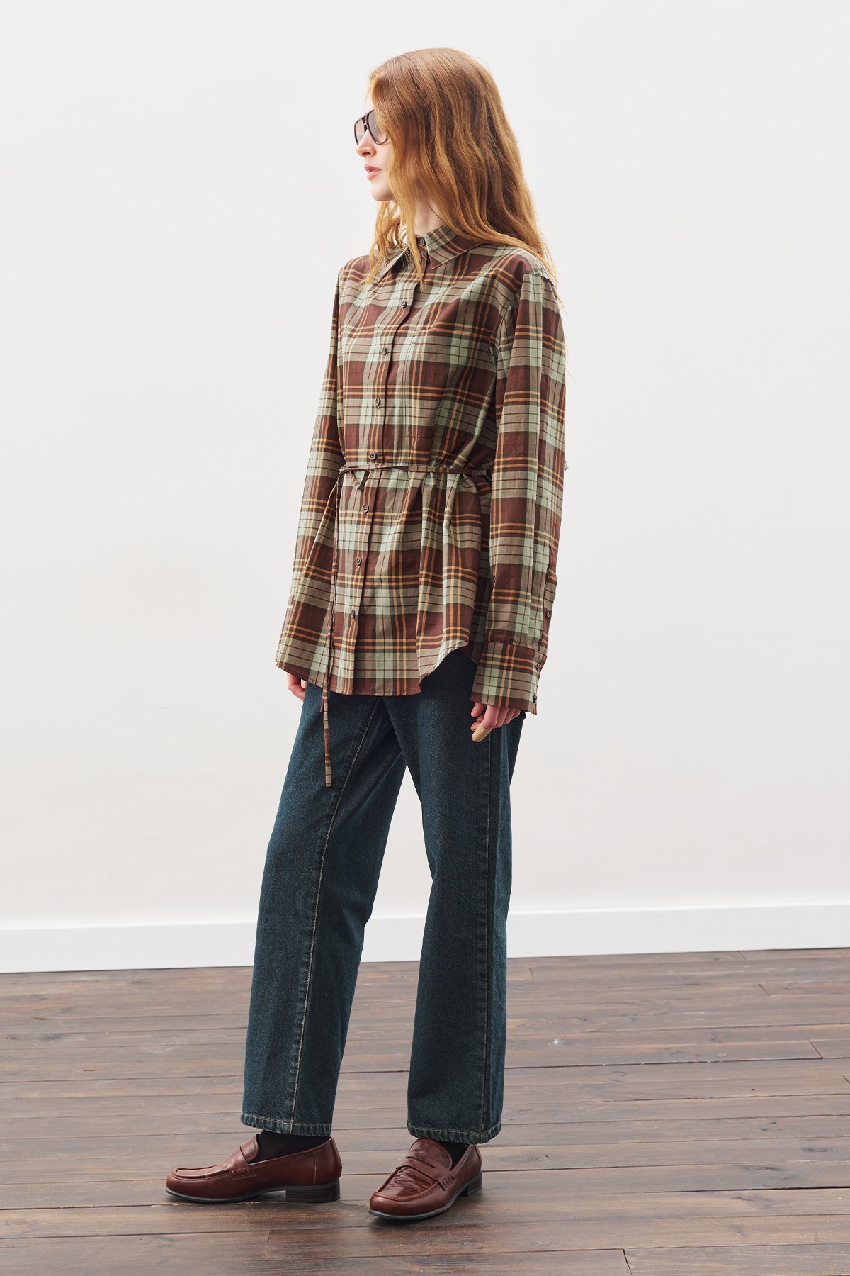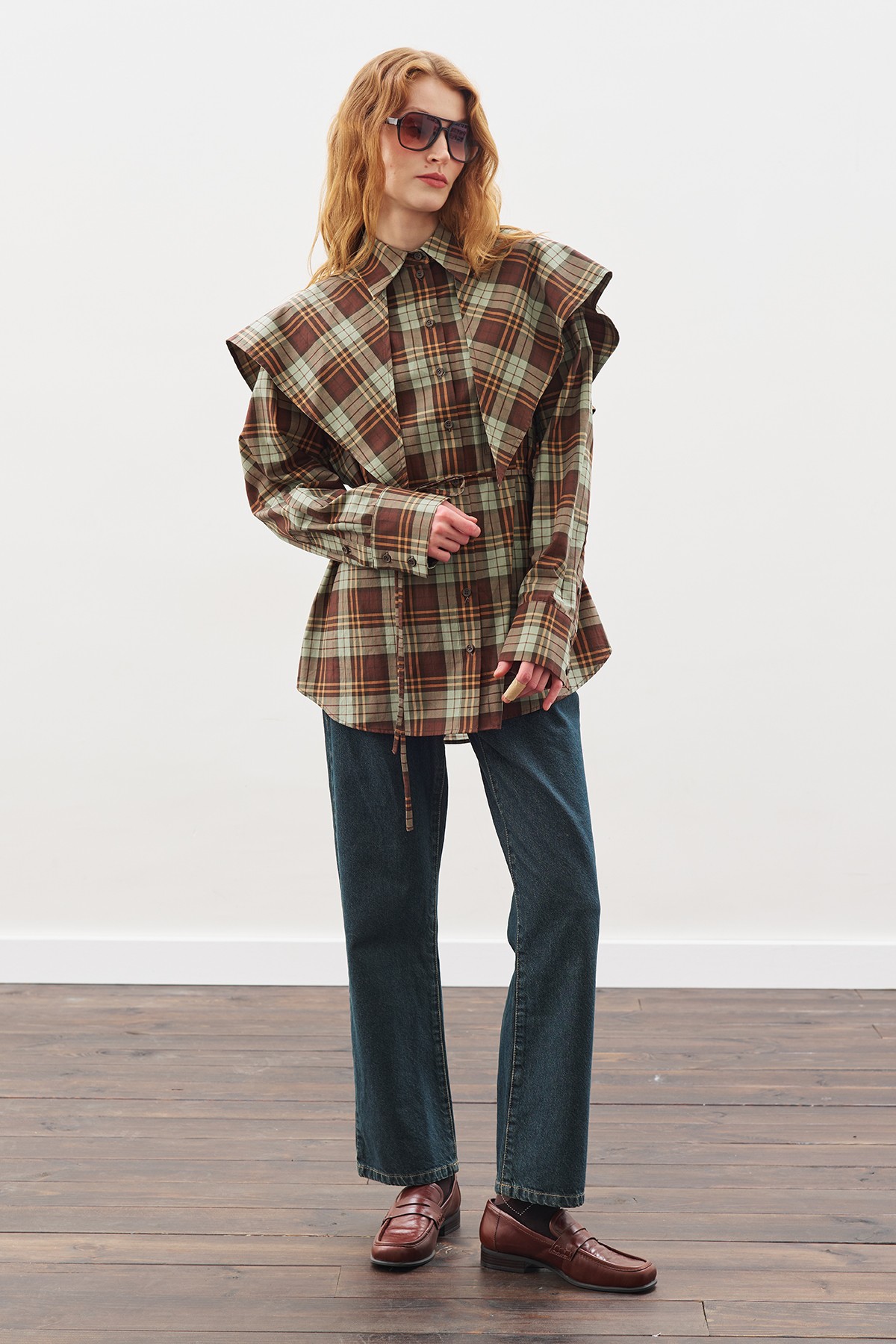 ÜÇGEN FULARLI OVERSIZE GÖMLEK EKOSE YEŞİL