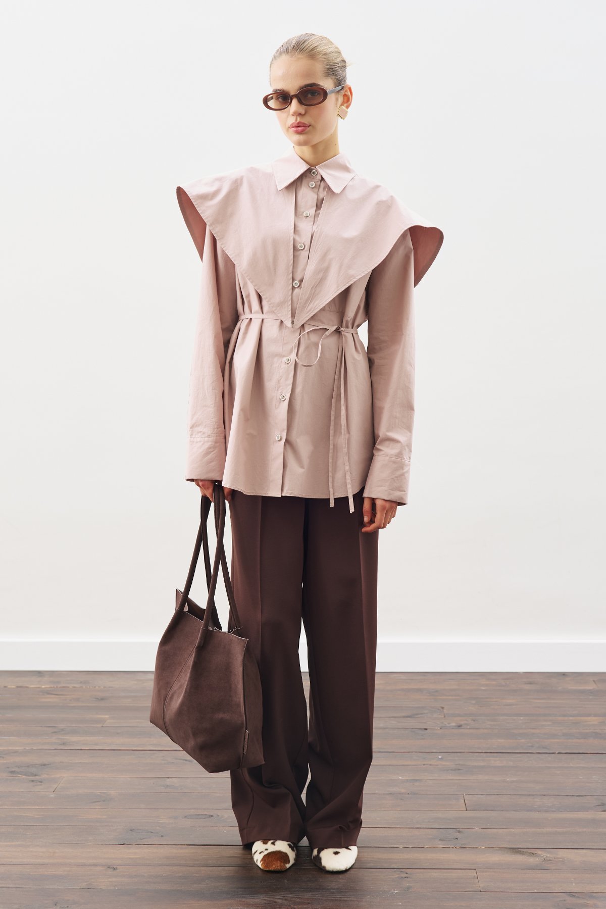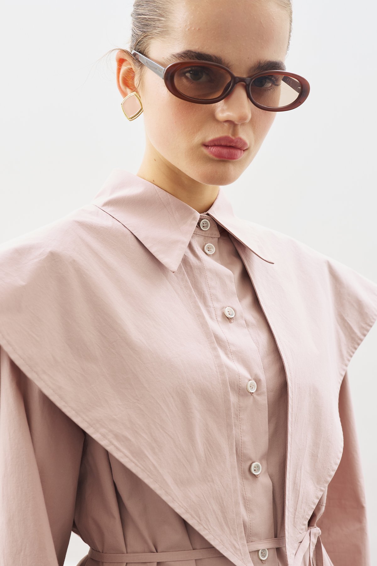 ÜÇGEN FULARLI OVERSIZE GÖMLEK SOFT PEMBE