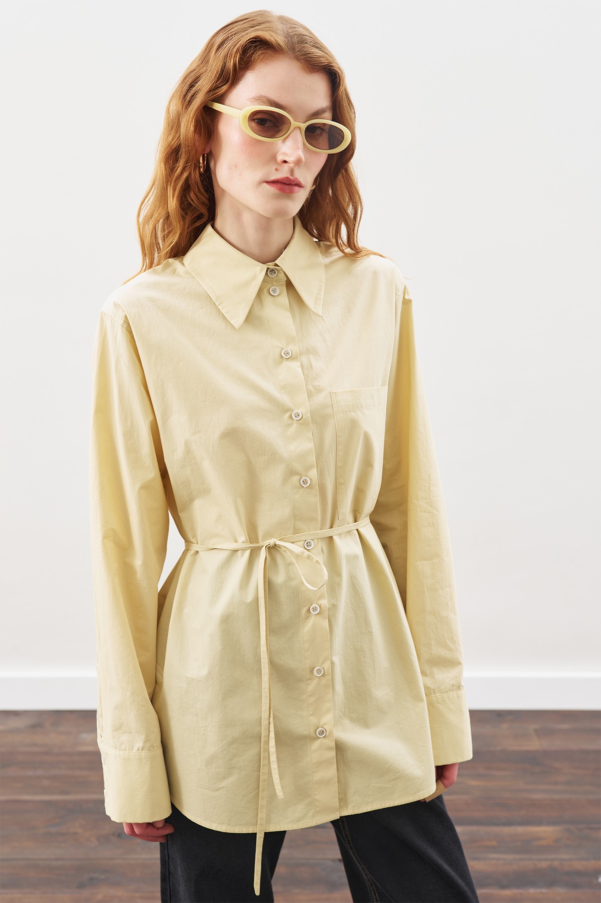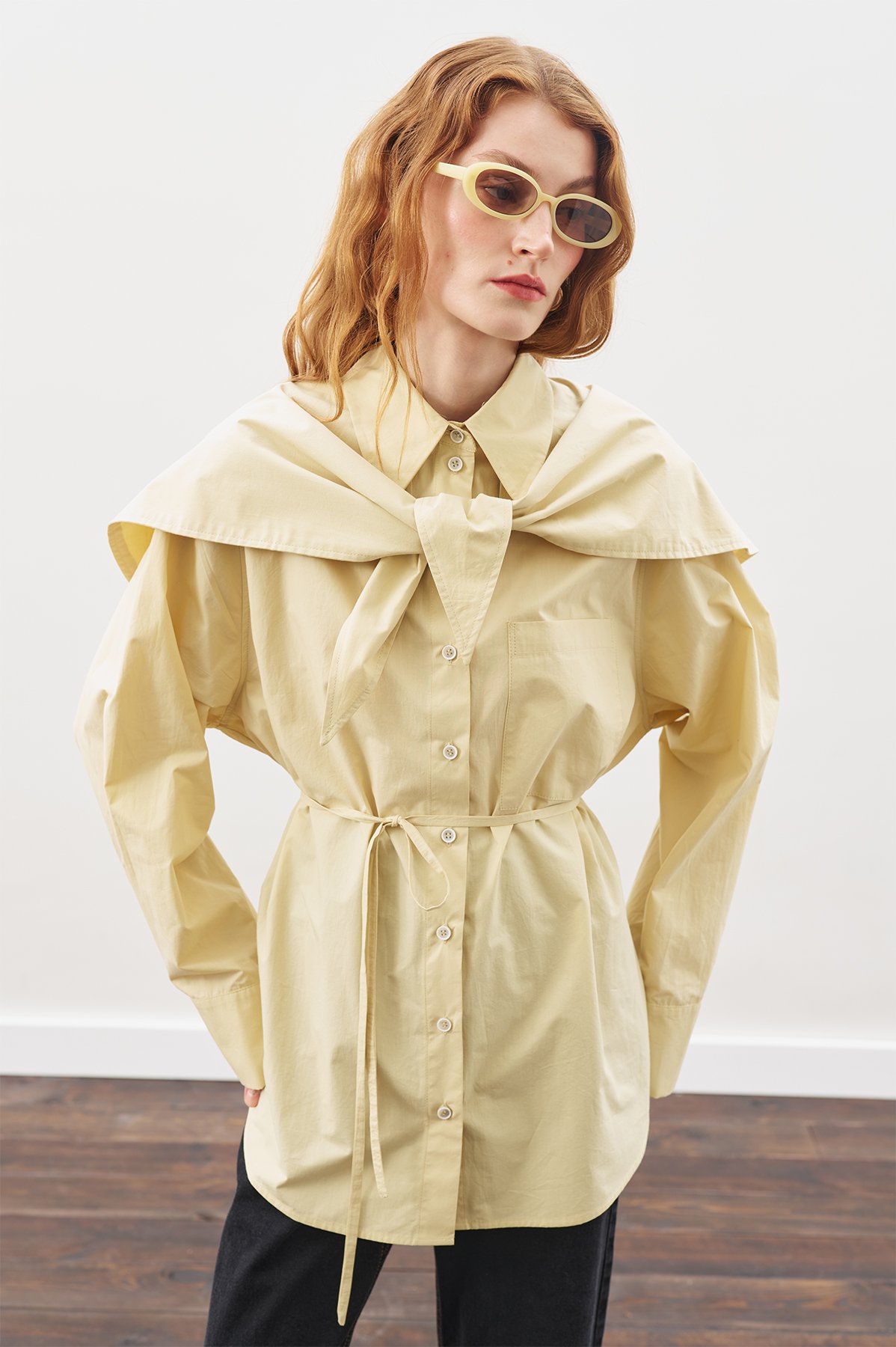 ÜÇGEN FULARLI OVERSIZE GÖMLEK SOFT SARI
