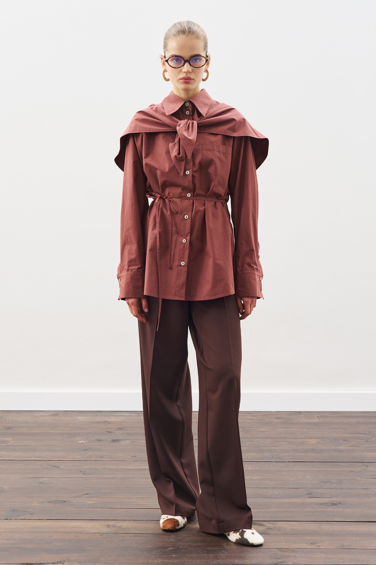 ÜÇGEN FULARLI OVERSIZE GÖMLEK TARÇIN KABUĞU
