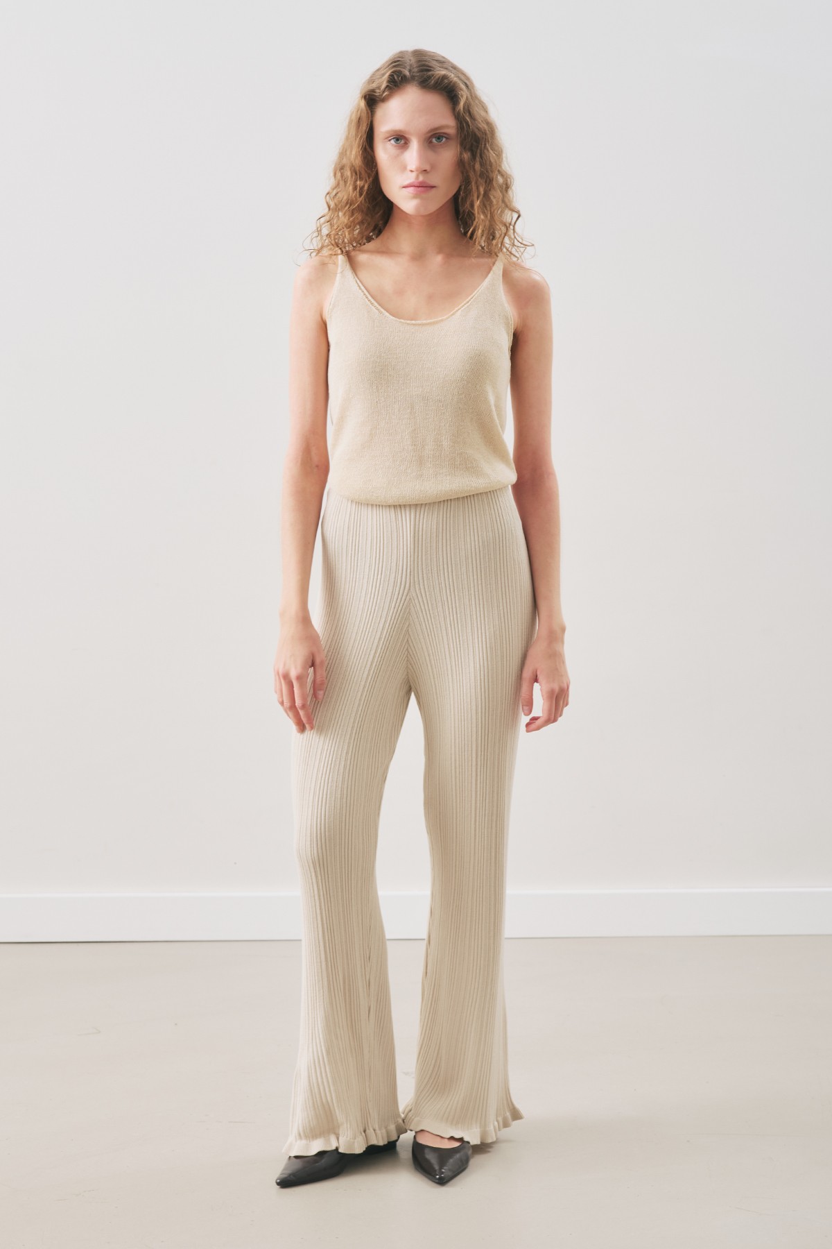 FLOUNCED RUBBER KNIT TROUSERS BEIGE