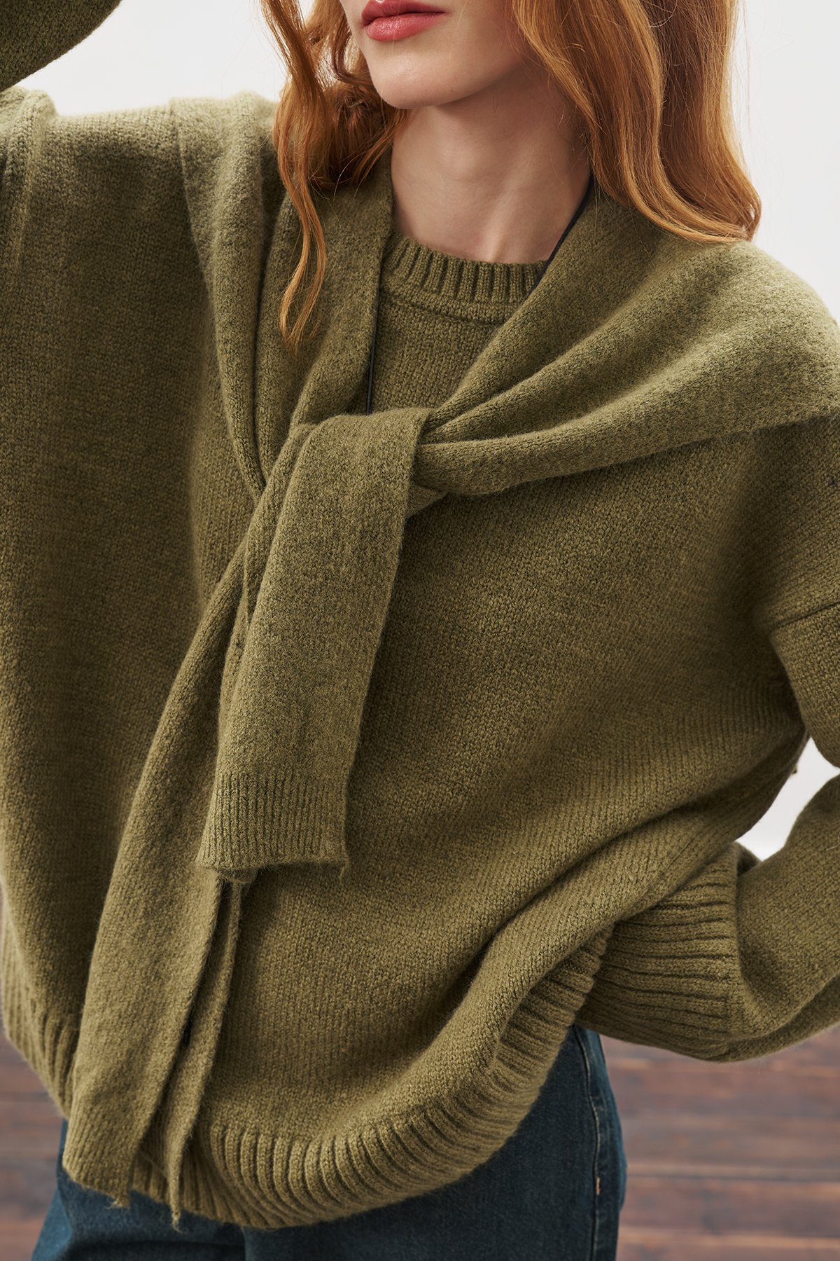 WIDE COLLAR KNITWEAR SHAWL DARK GREEN FEATURES