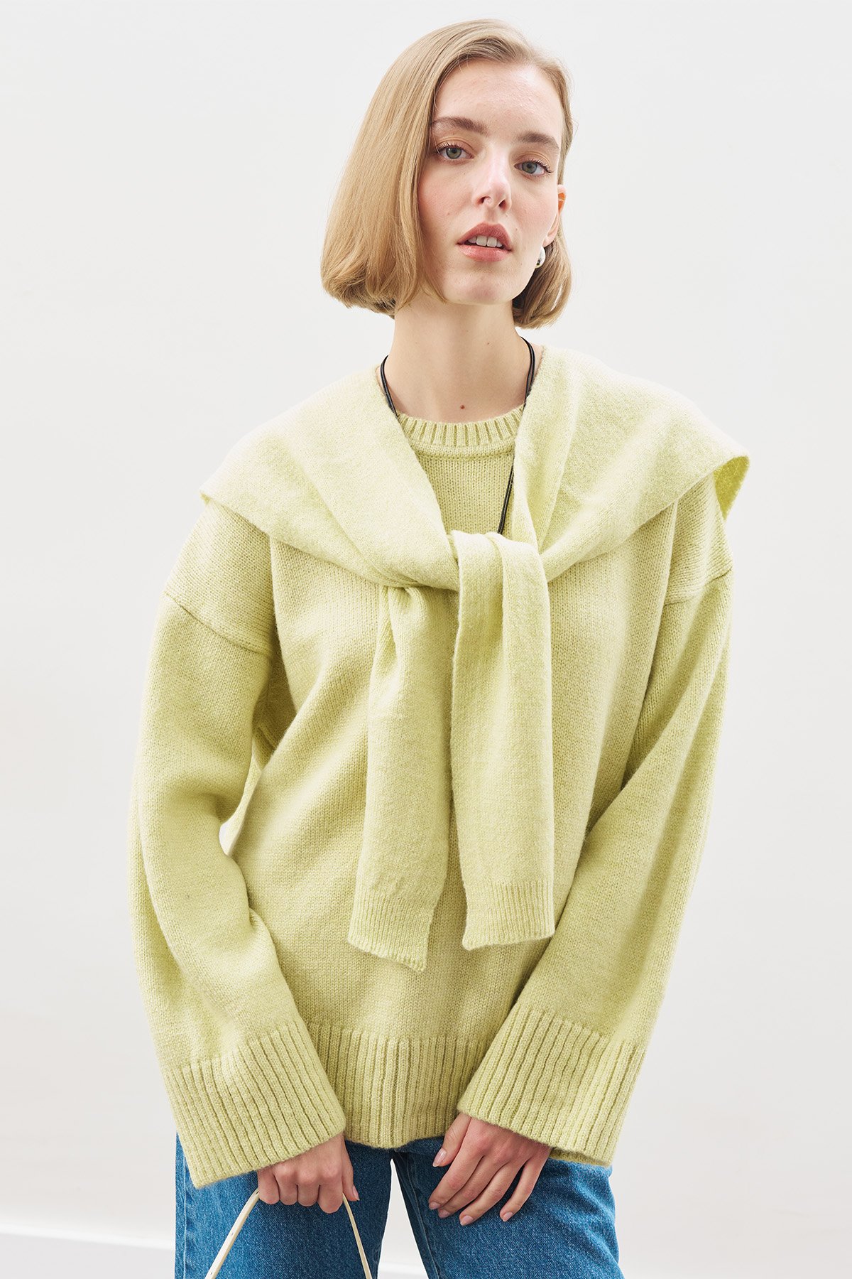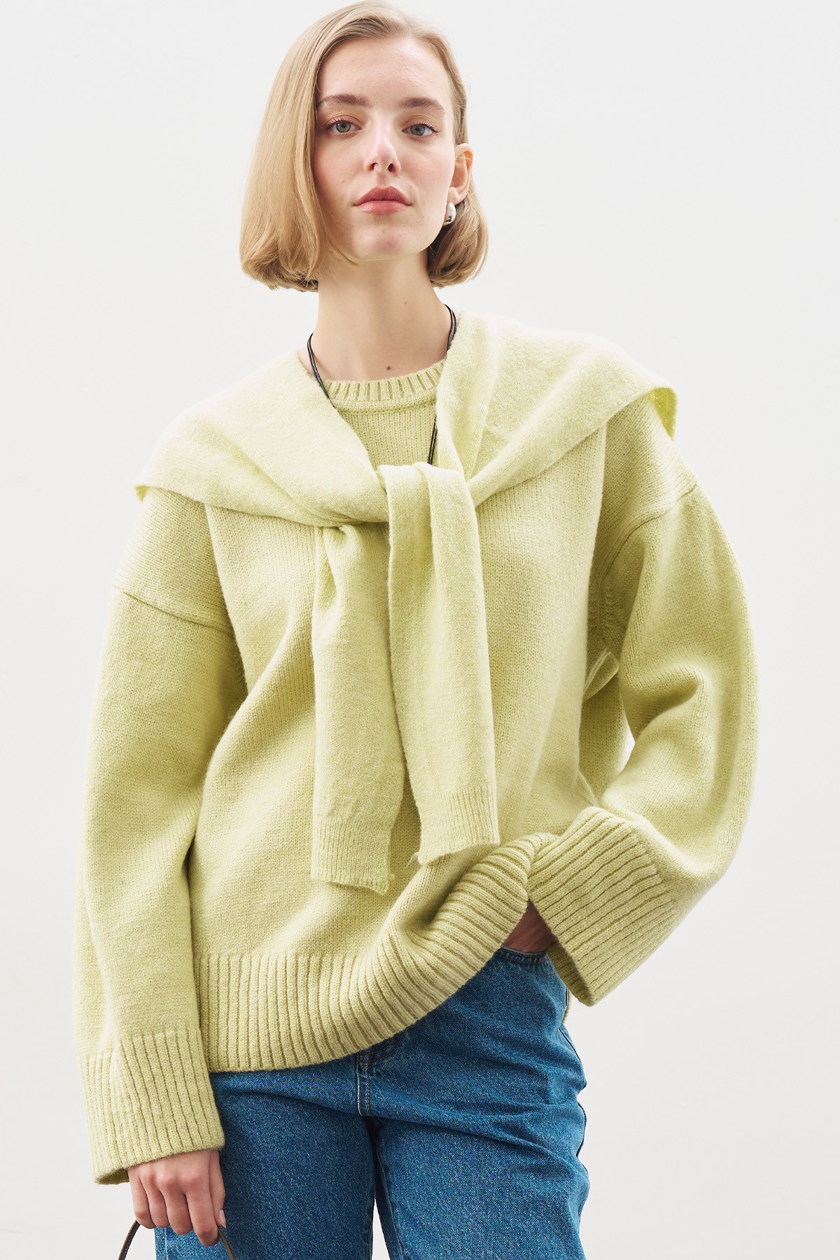 WIDE COLLAR KNITWEAR SHAWL LIME