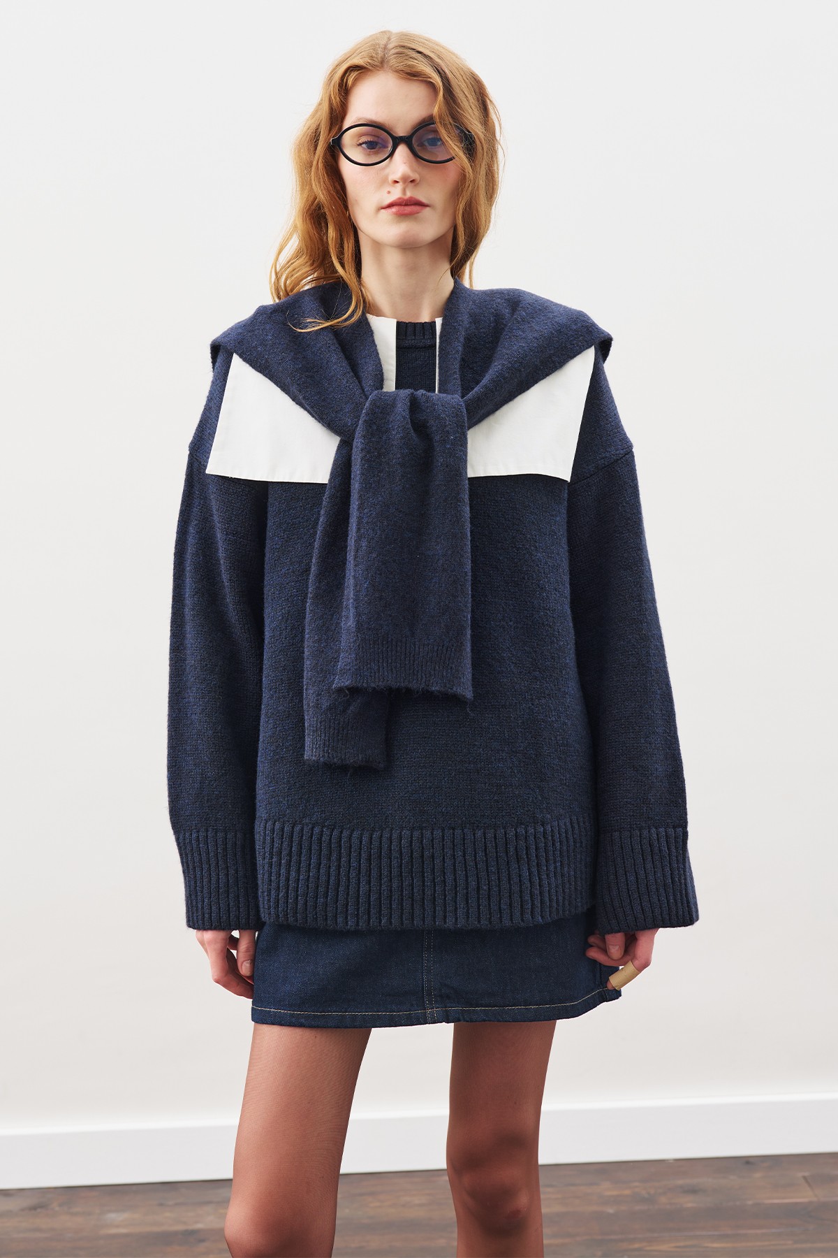 WIDE COLLAR KNITWEAR SHAWL NAVY