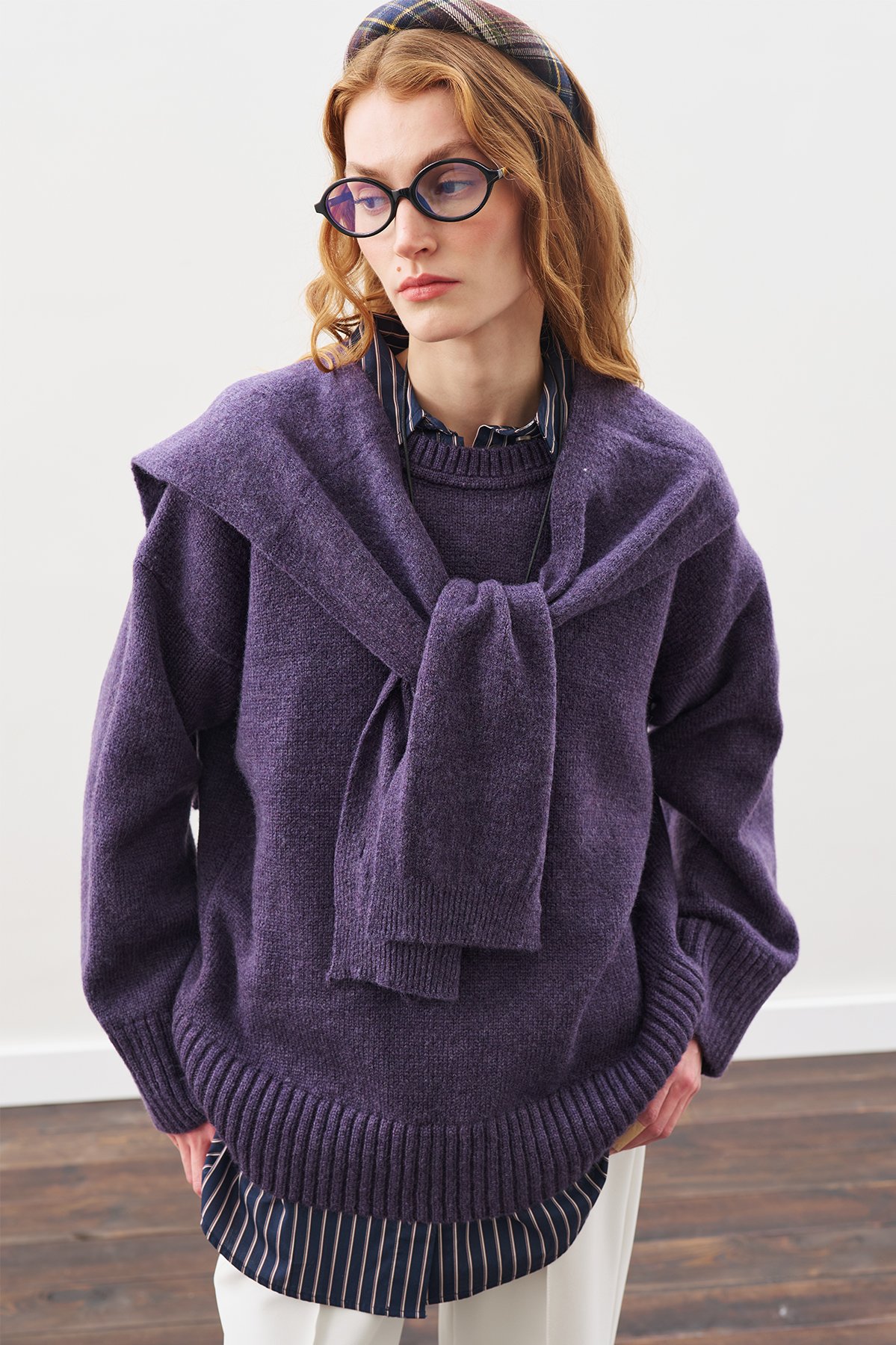 WIDE COLLAR KNITWEAR SHAWL PURPLE