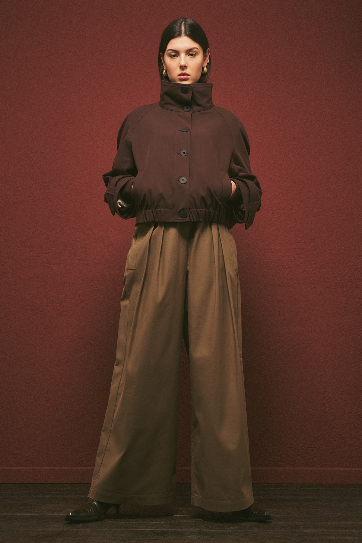 WIDE PLEATED GABARDINE TROUSERS KHAKI FEATURES