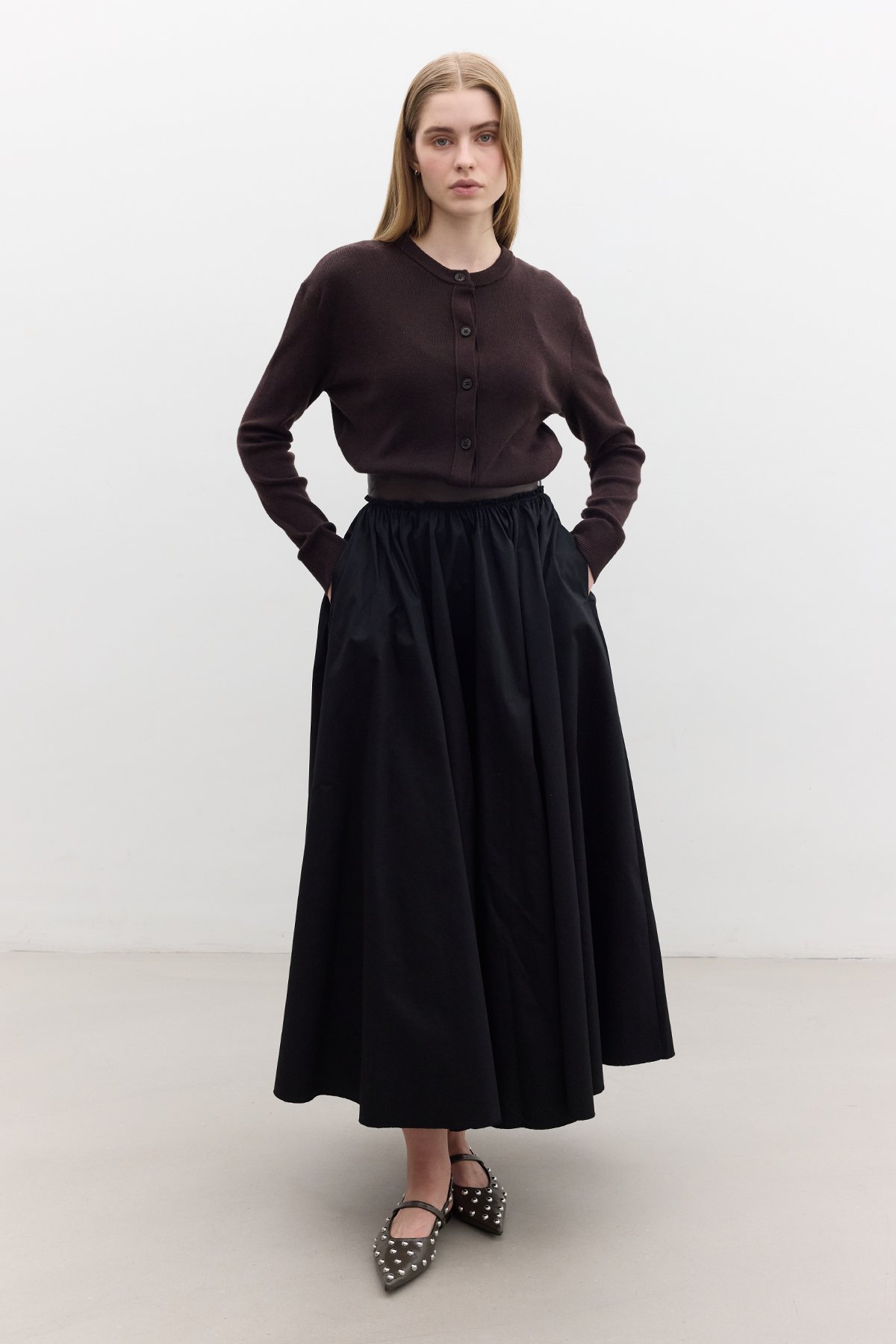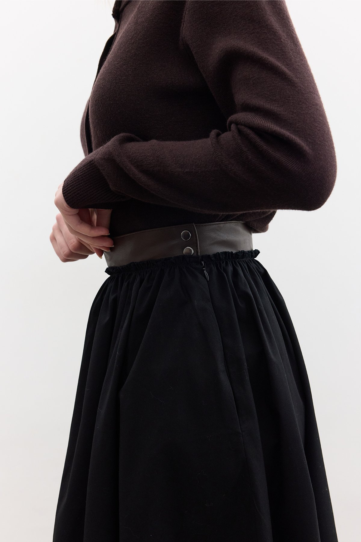 WIDE SKIRT WITH LEATHER DETAILED BLACK