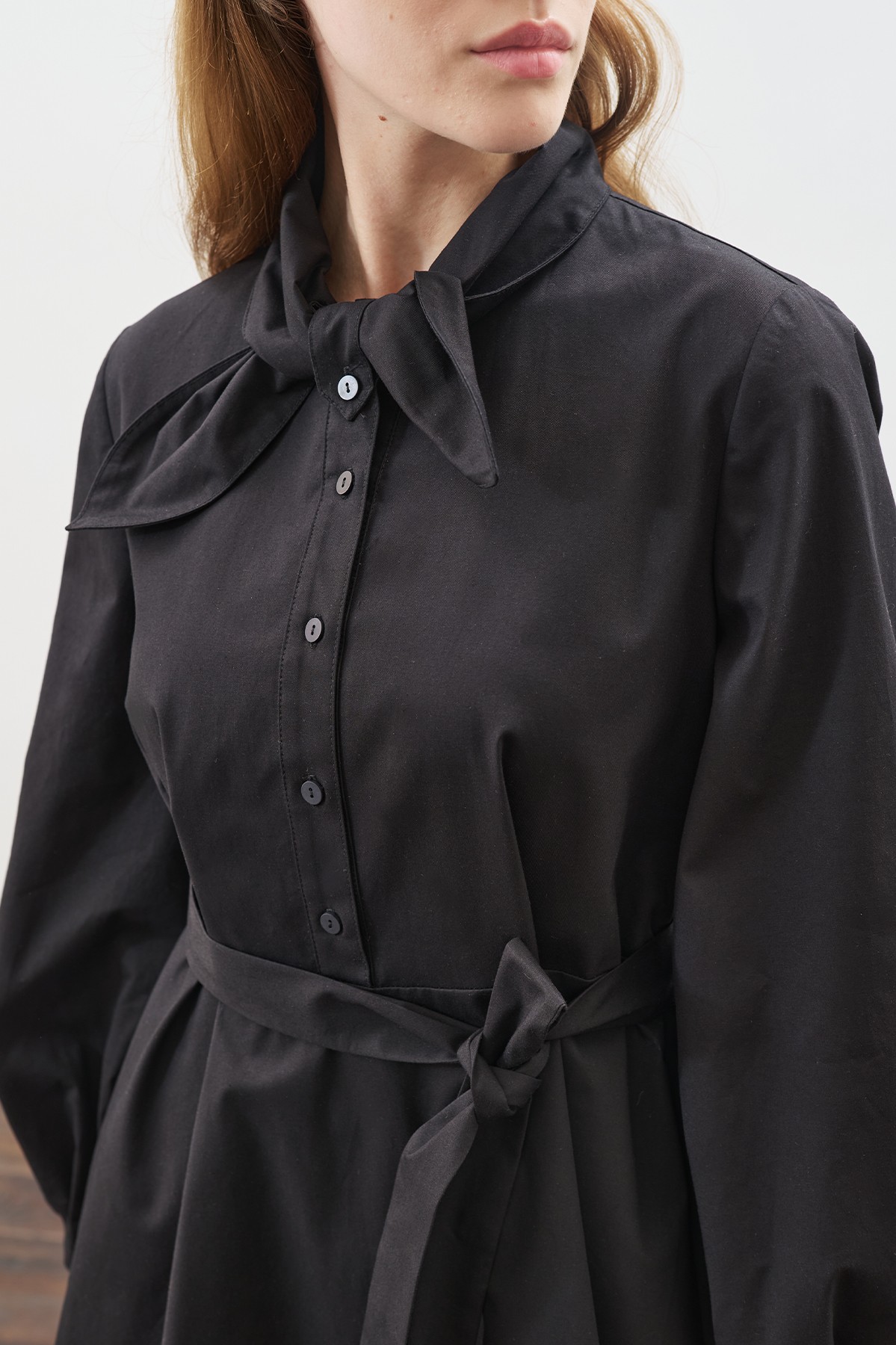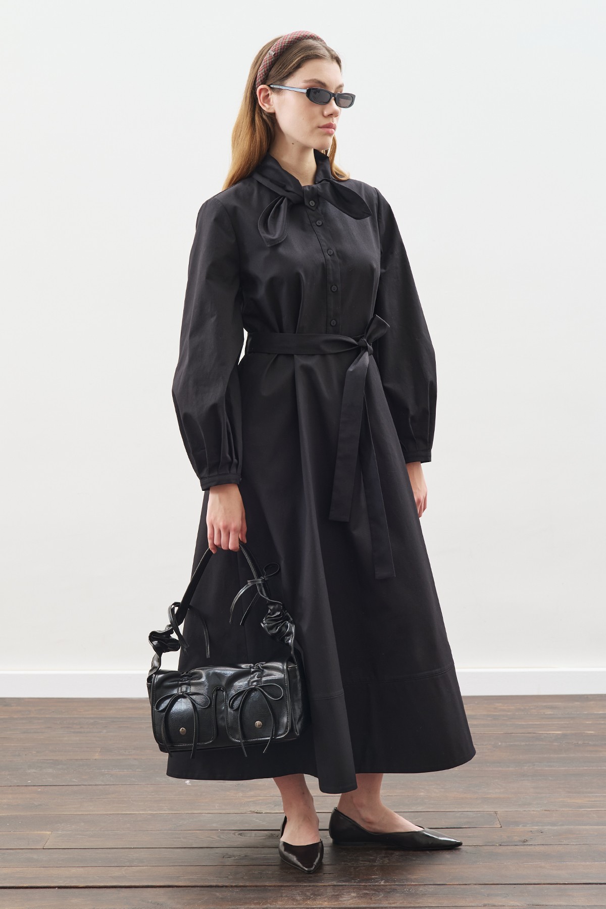 YAKASI BAĞLAMA DETAYLI ELBİSE SİYAH