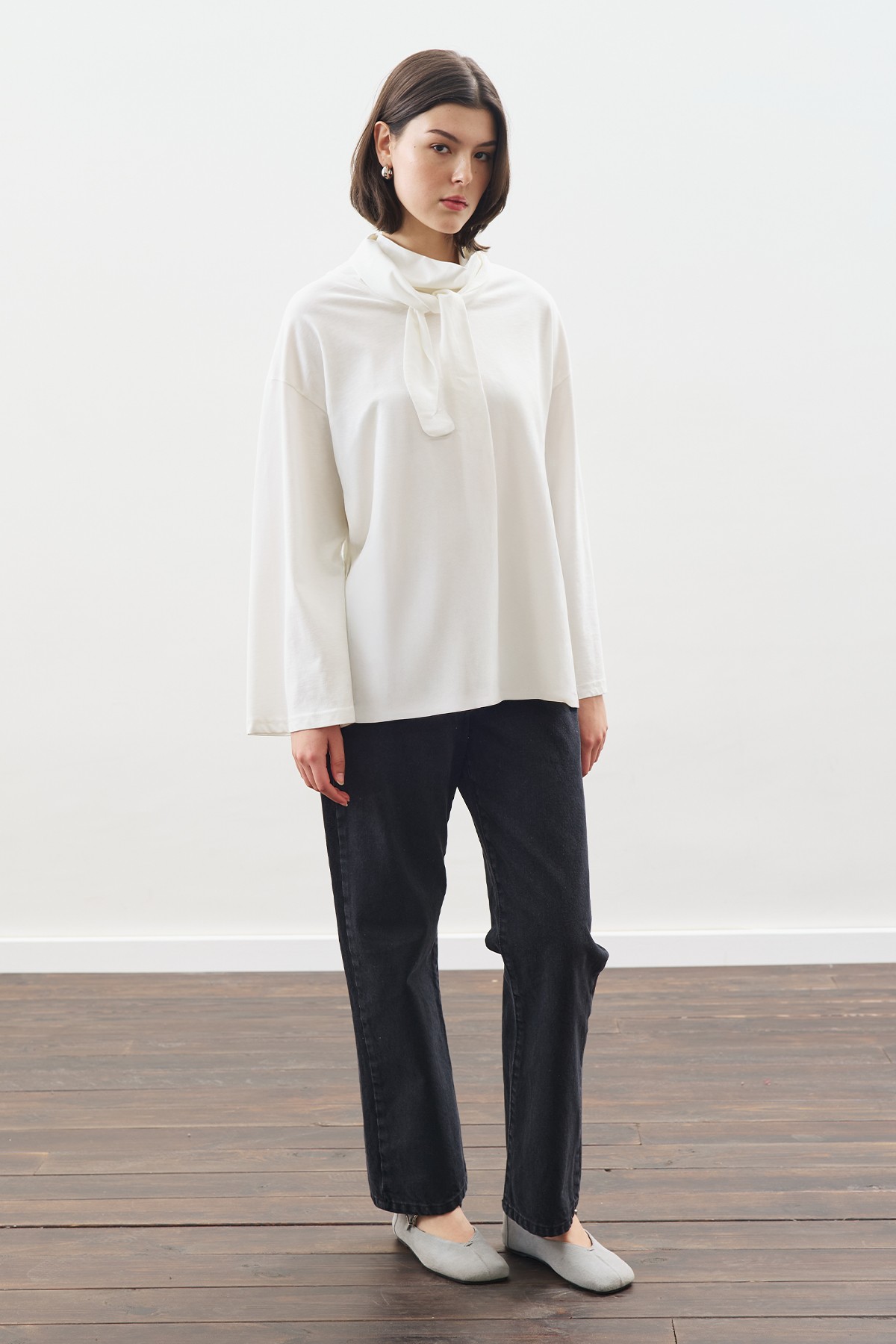 YÜKSEK YAKA BAĞLAMALI BLUZ EKRU ÖZELLİKLERİ