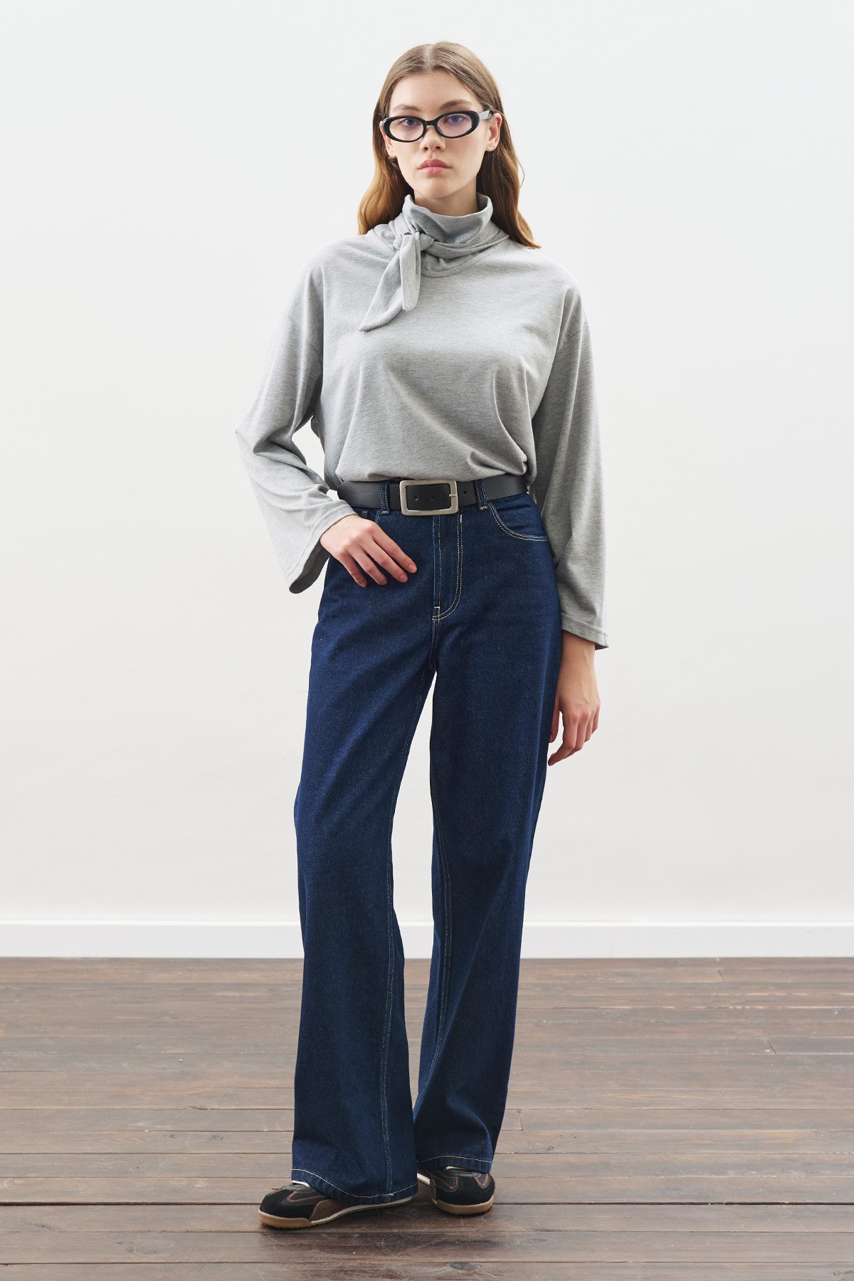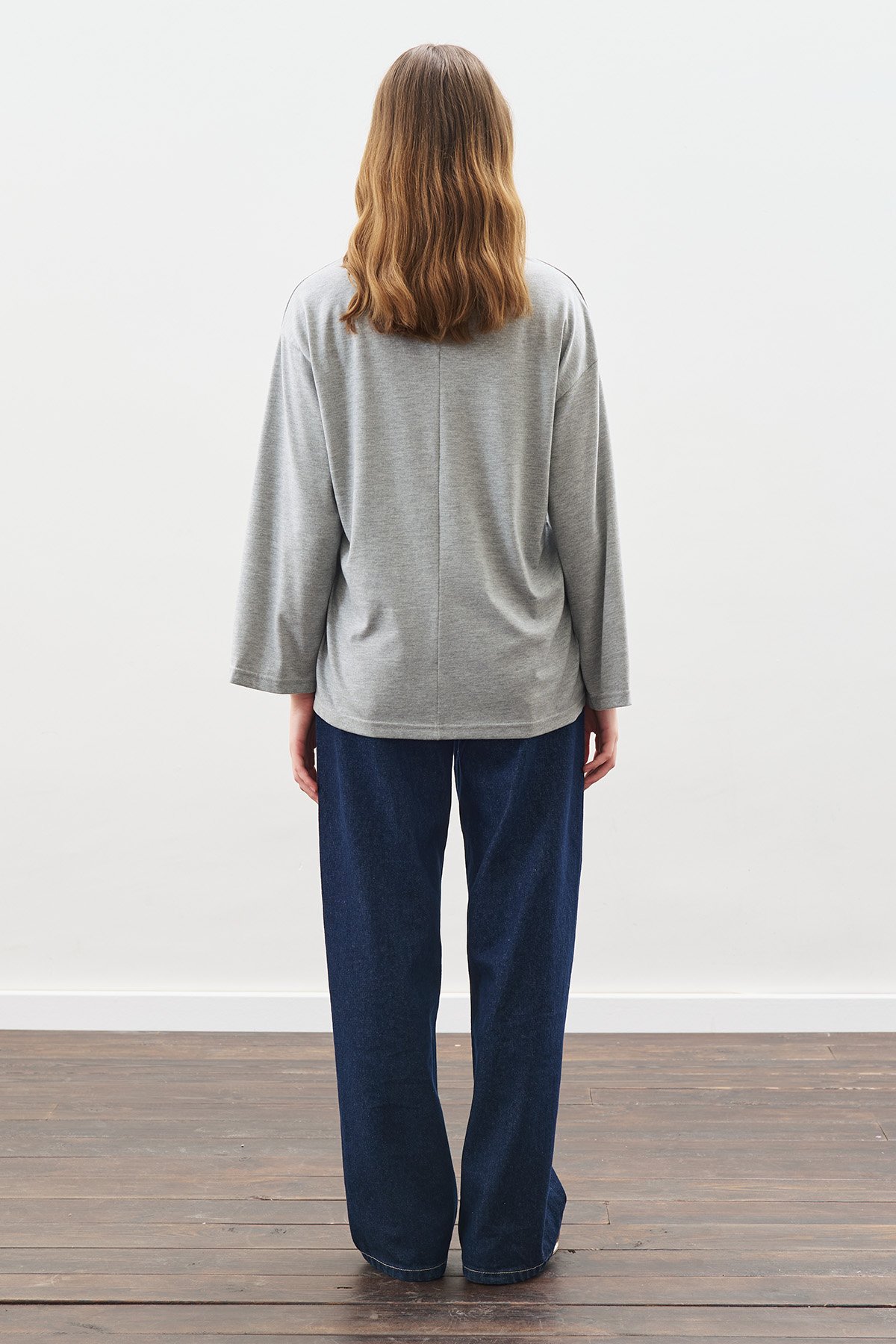 HIGH NECK TIE-BLOUSE GREY MELANGE FEATURES