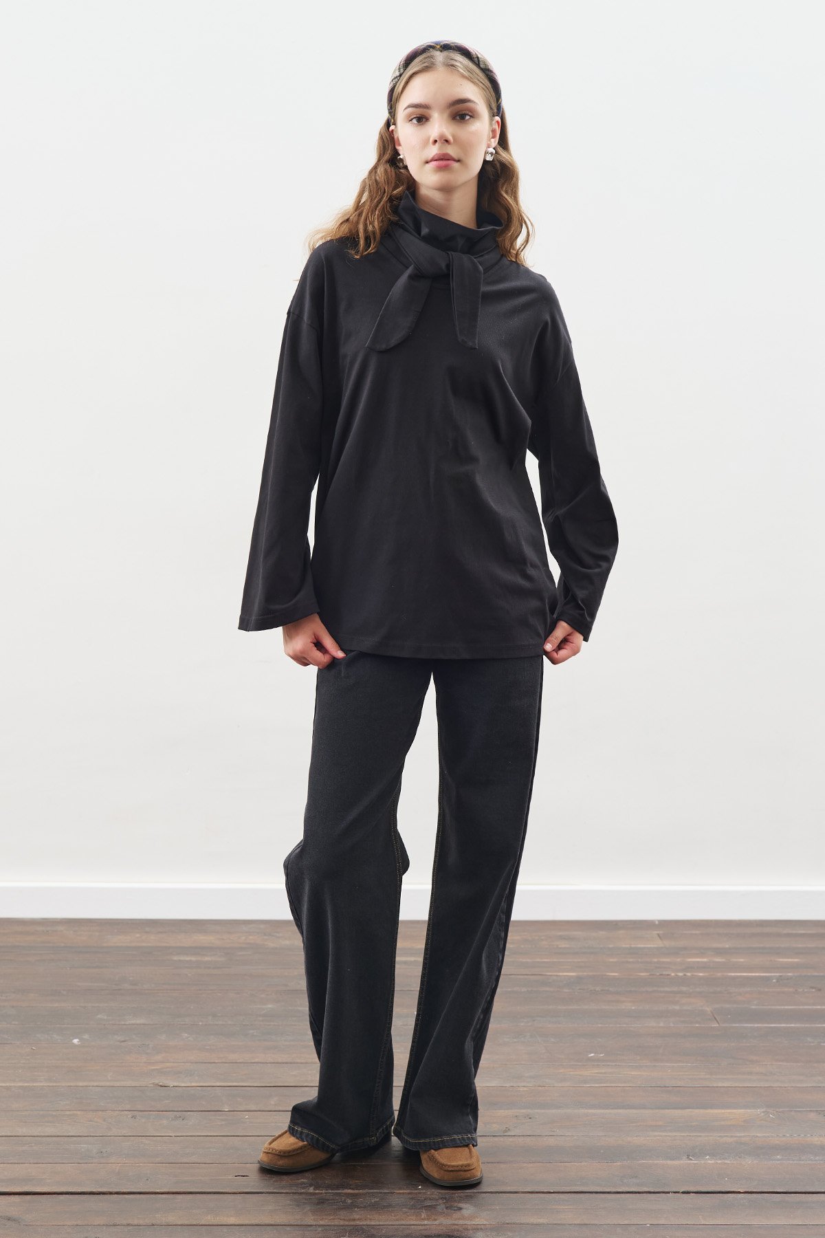 YÜKSEK YAKA BAĞLAMALI BLUZ SİYAH