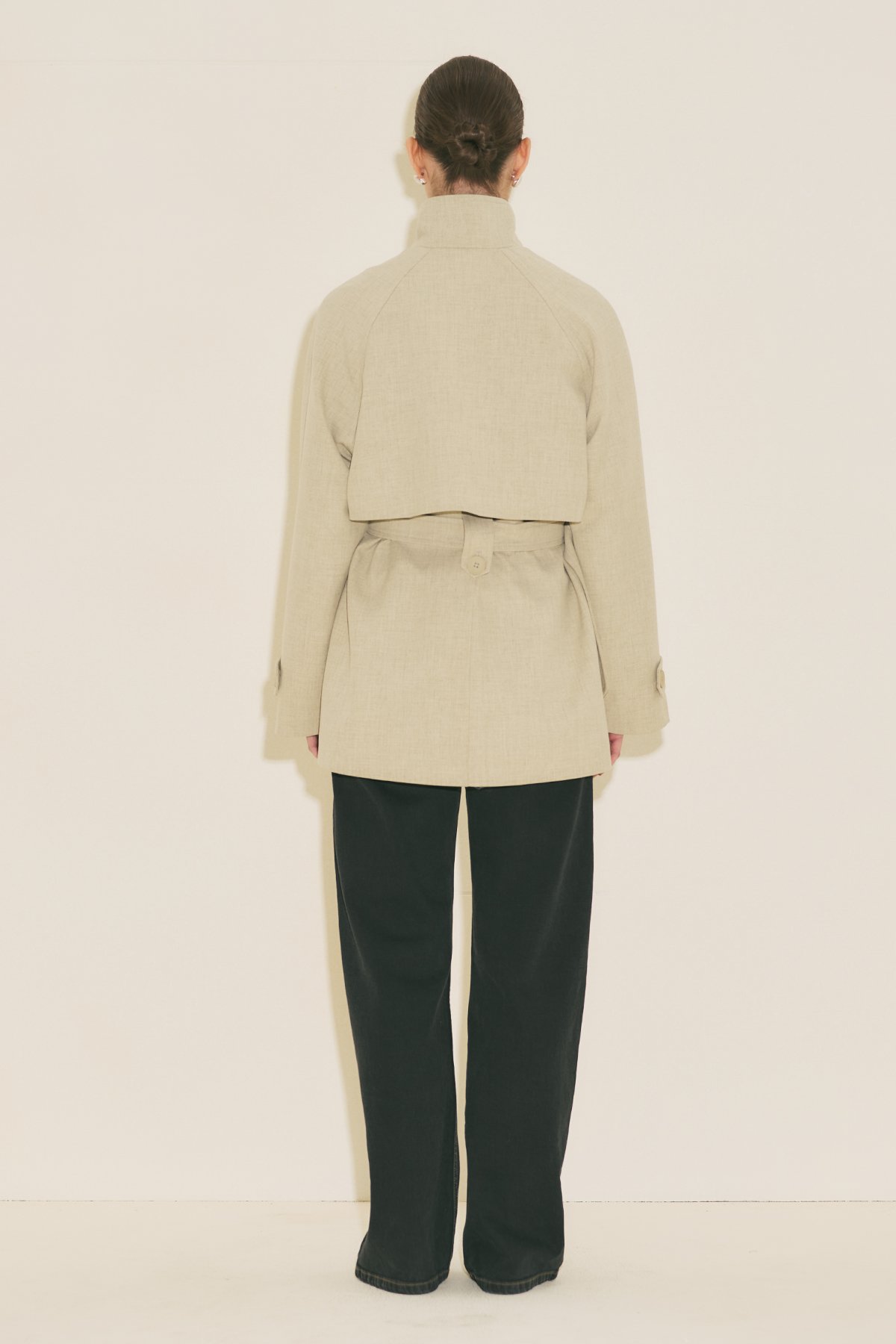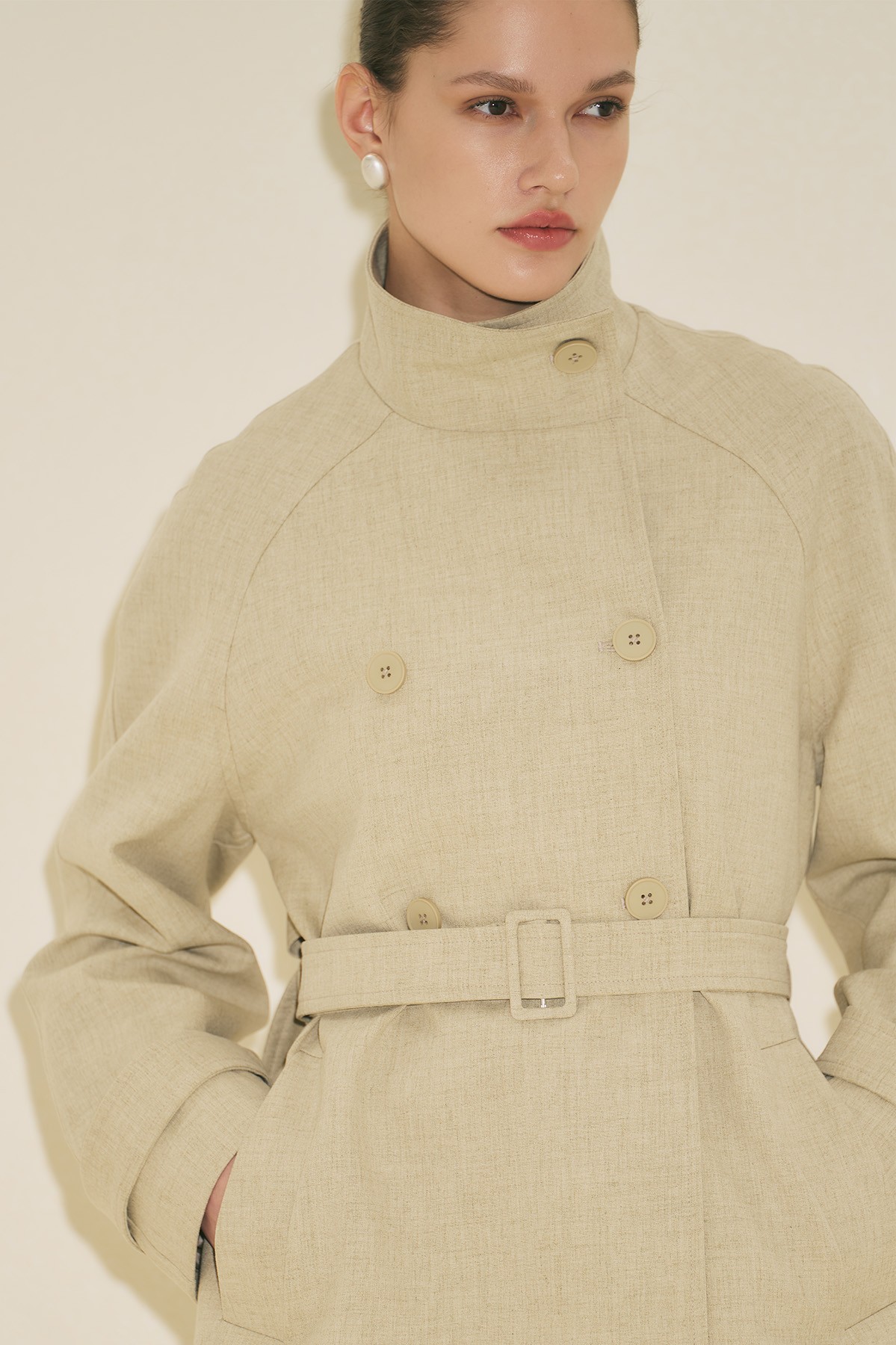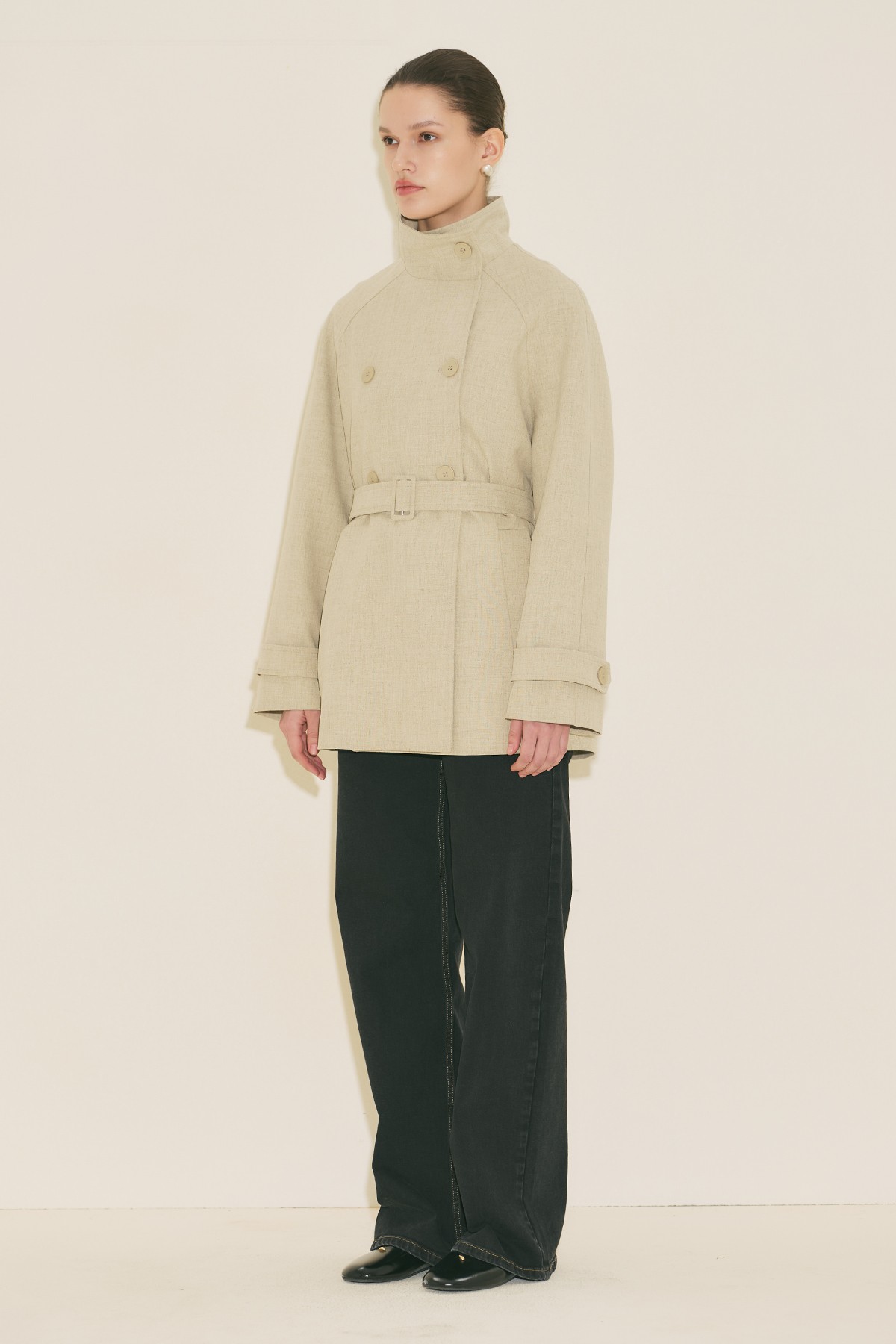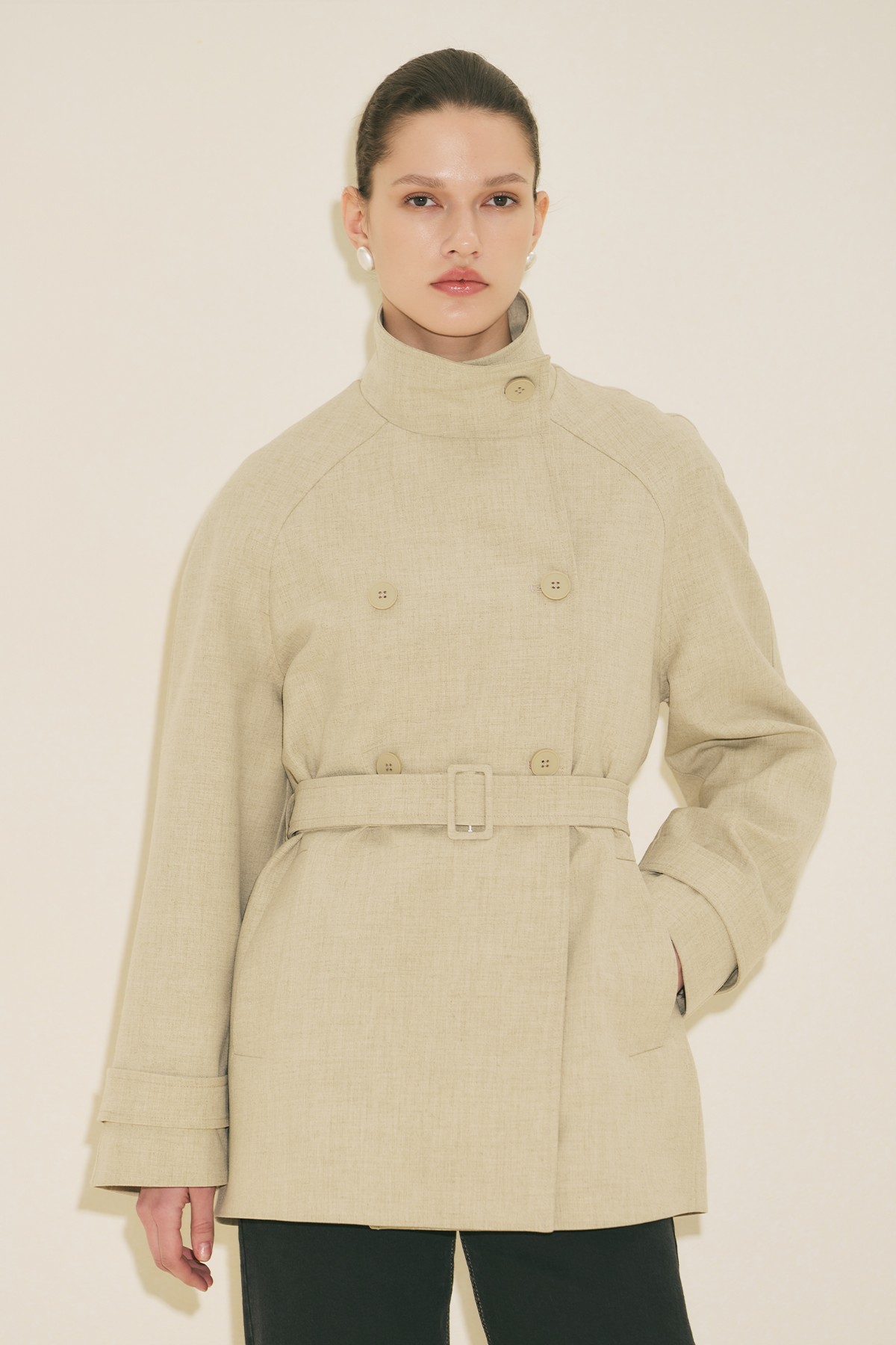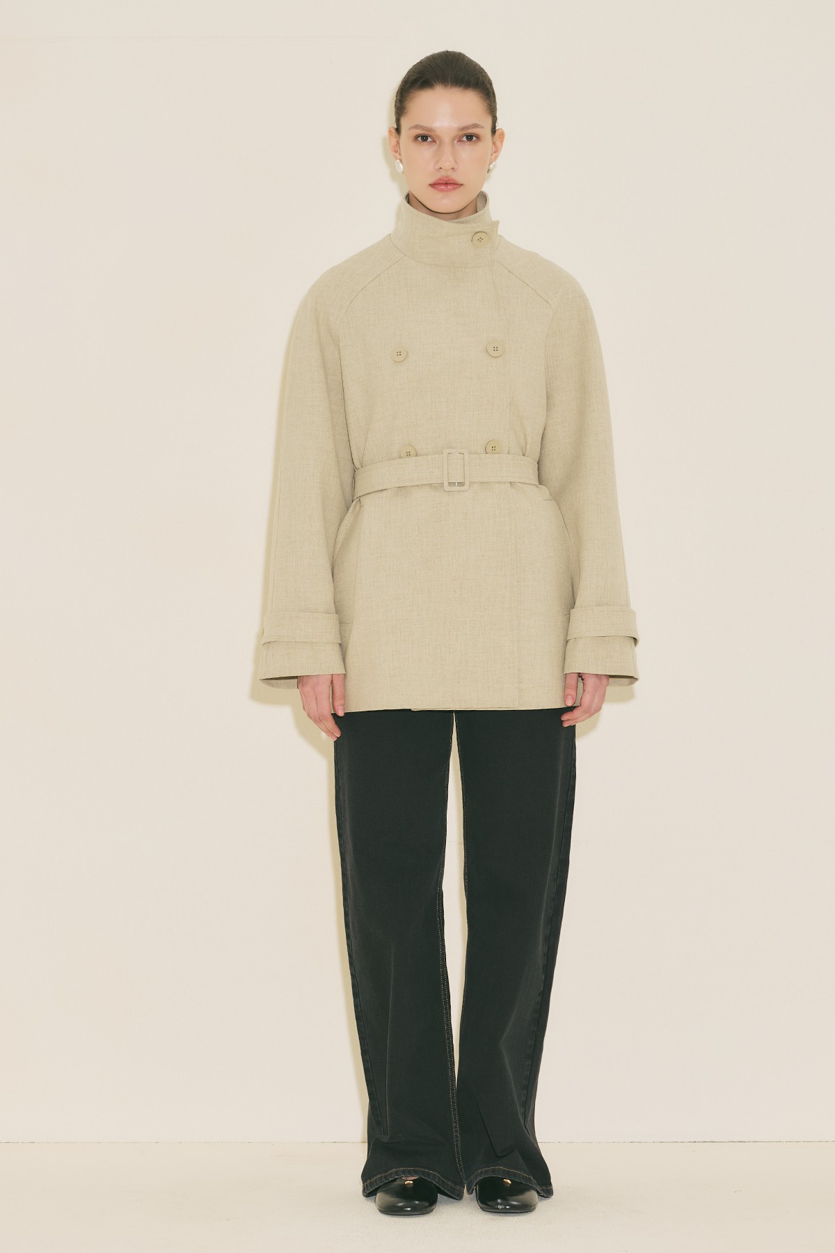 Regular form, yüksek yaka, reglan uzun kol, ara boy, düğme kapamalı.
