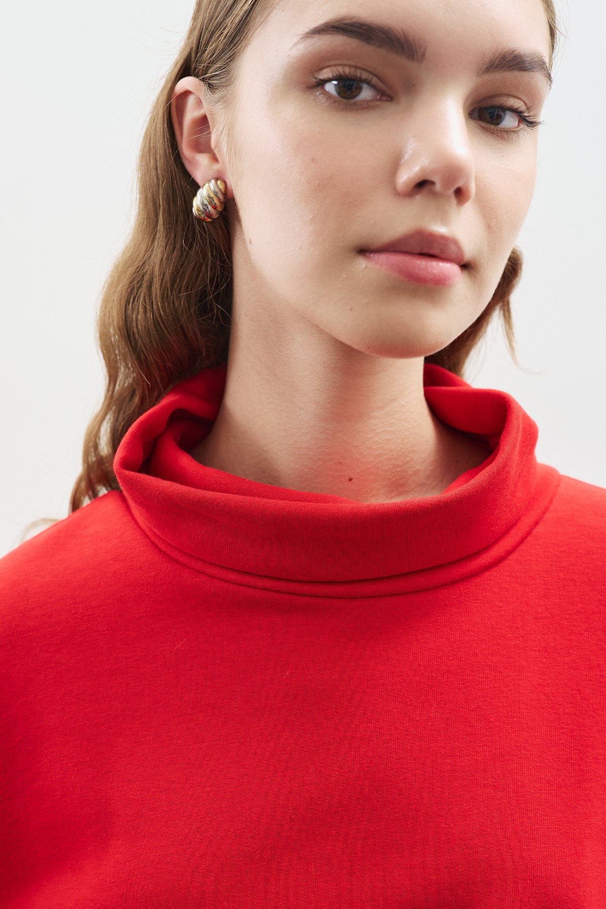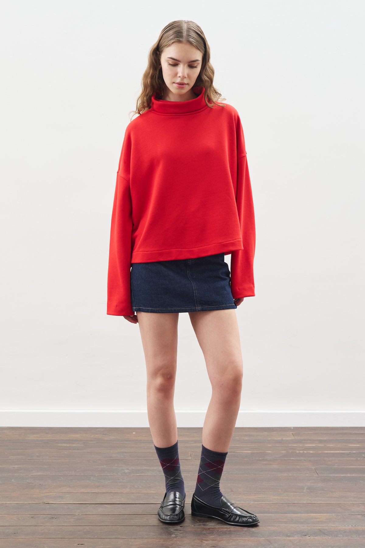 YÜKSEK YAKALI OVERSIZE SWEATSHIRT KIRMIZI