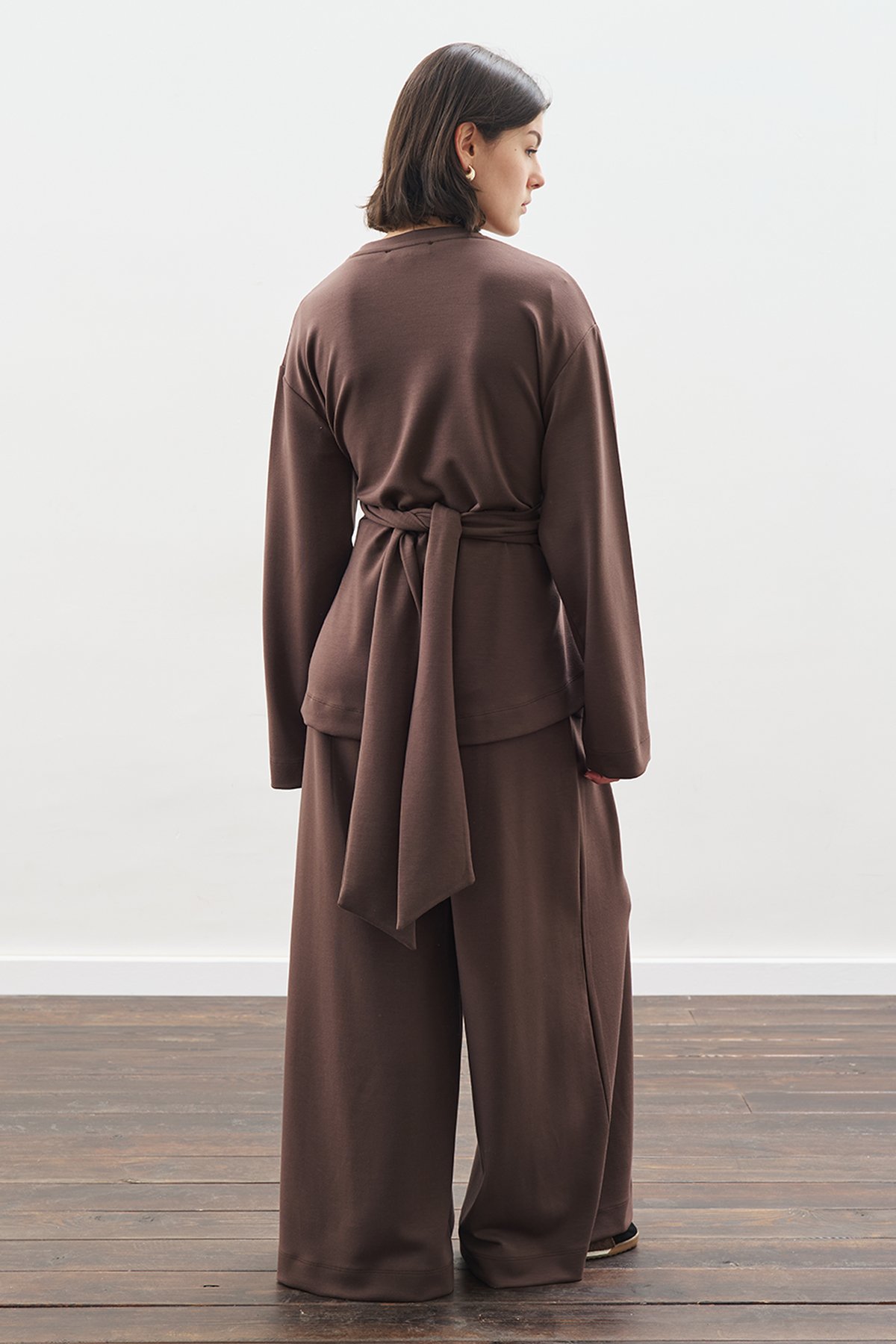 YUMUŞAK DOKULU MODAL BAĞLAMALI SWEATSHIRT KAHVERENGİ