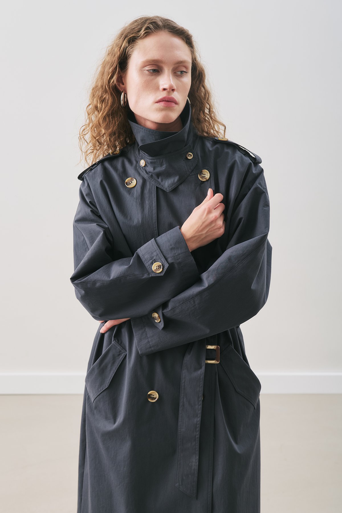 ZURICH OVERSIZE TRENCH COAT NAVY FEATURES
